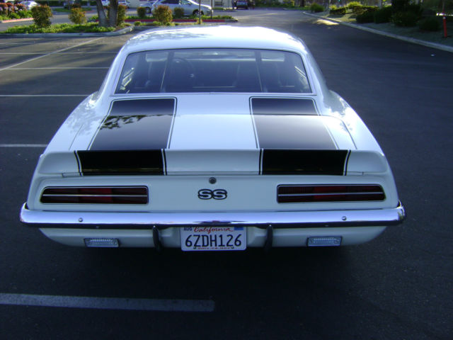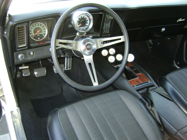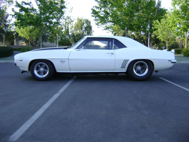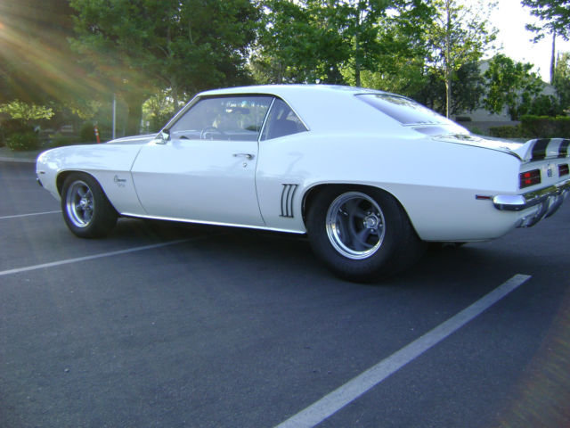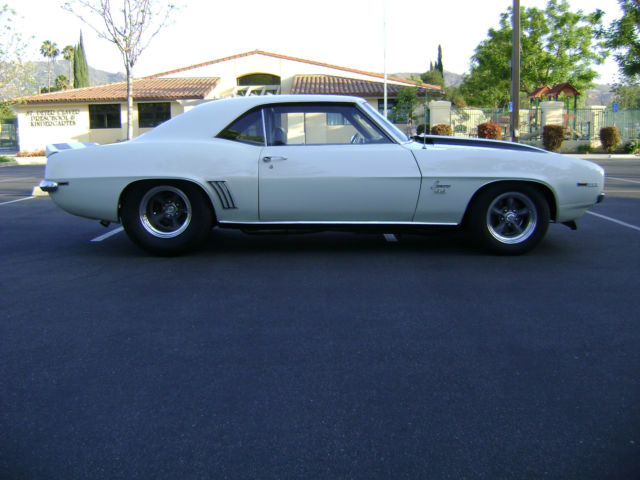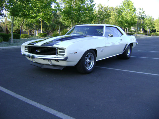 1969 SS/RS Pro Street Camaro. 1970 LS6 454/450HP Engine with 10:1 compression ratio.The block is a 512 casting number with GM oval port heads. Comp Cams 11-213-3 kit made up of Cam/Lifters/Valvetrain-Hydraulic flat tappet,Adv.Duration 292int./292ext.,Lift .550int./.550exh. Weiand stealth dual plane intake,Holley 750 Double Pumper,Holley mechanical fuel pump,Hooker Headers. 3 inch flowmaster exhaust which exits out behind the rear tires. Most Pro Street cars either exit before the rear tires or under the car,this does not,so at a stoplight you don't get overwhelmed with exhaust fumes. 4 row radiator with factory clutch fan and shroud which runs at 185 degrees all day long even in summer. Muncie M21 4 speed with Hurst Competition shifter. Rearend is a 9 inch with 31 spline axles with 4:11 Posi Gears. Front suspension is stock Camaro with power steering, power disc. brakes. Rear suspension is a 4 link with Koni coil over shocks.Subframe connectors tie the front and rear suspension together. Paint and body are in excellent condition with straight panels and flat paint. Interior is stock comfort weave front seats with vinyl covered panels in the rear.Factory dash and console with Auto meter gauges. Headlights have been upgraded to Detroit Speed and Engineering electric units. Fuel cell is 16 gallon. Front tires are B.F.Goodrich Radial T/A P215/65R15 on 15 x 7 Torque Thrust D rims. Rear tires are Hoosier Pro Street Radial 29 x 18.5 x 15 on 15 x 14 Torque Thrust D rims. The rear wheel wells are the factory length and have not been stretched to fit the tires and have the factory wheel moldings. This car runs and drives great and has Approx. 6000 miles since being built. Car sold as is with no warranty.No trades.