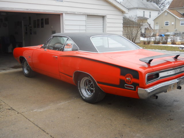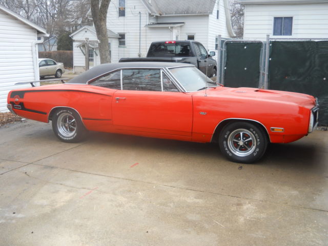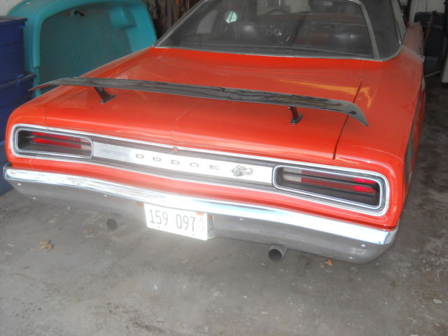 The tires have very little miles on them. There is no rust. Has a ding by the passengers door as shown. And a few small dings on the chrome. Paint is warn showing the org. paint and it was orange as shown. The rims don't have no rust. The engine compartment is clean . Has dual exhaust. Had some body work done. Trunk bottom was replaced. Motor number don't match. Please ask any questions you have. The seats have a little wear. Radio is not org. Dash has not been altered. It has a Hurst shifter. 4 Speeds trainee. Iam located 90 miles SW of Chicago Buy can come and look at it before bidding. THIS IS NOT A CORONET. its a ebay listing thing. I will not hold it, meaning one need to put a 500.00 down payment with in 48 hours and when you come to pay for it you will need to bring cash only. OK now the title is clear and it matches the fender vin. Now the body style dosent match the vin because it dose not have a center post. between the front and back window. Some one else retitle this car because of the vin. So the title matches the vin. Iam listing this for the owner. I believe it is a legal title so one can order a plate and change the title into there name. Thanks
