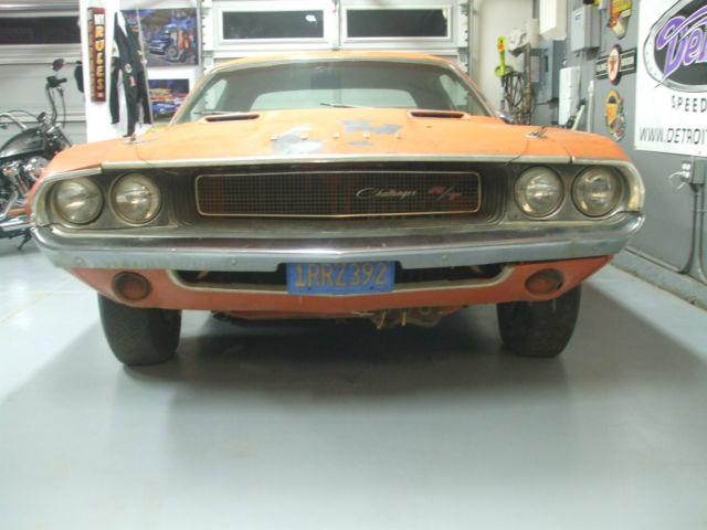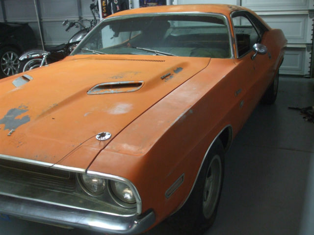 UP FOR BID AT ...ITS SELLING TO THE HIGHEST OFFER IS A CLEAN 1970 REAL CHALLENGER RT JS23 WITH A 383 /AUTO SLAPSTICK ...THE ENGINE IS NOT CORRECT FOR THE CAR ITS DATE CODED 68 ... THE CHALLENGER HASNT BEEN ON THE ROAD SINCE 1988 IT DOES RUN AND DRIVE AS I TESTED IT WITH MY IGNITION SYSTEM FROM MY OTHER MOPAR WHEN I PURCHASED THE CAR A WHILE BACK .....THE ONE THAT WAS IN THERE WAS BURNT UP ....... THE IGNITION SWITCH IS BAD ..I THINK THATS THE REASON THE CAR SAT FOR SO LONG ...THIS CAR HAS HAD THE SAME OWNER SINCE THE LATE 70S AND HASNT BEEN MOLESTED OR HAD ANY BODY PANELS REPLACED ....THE CAR IS VERY CLEAN AND RUST FREE EXCEPT FOR A FEW SPOTS BETWEEN THE REAR WINDOW AND THE TRUNK AND A FEW PIN HOLES IN THE TRUNK WERE THE EXHAUST HANGERS GO THATS ABOUT IT ....THERE IS ALSO A MINOR DING IN THE FRONT FENDER AS YOU CAN SEE IN THE PICTURES .... THE VIN , DOOR VIN AND THE STAMPINGS ARE ON THE COWL AND THE CORE SUPPORT ALL MATCH ....THE CAR WAS REGISTERED AT THE HAMTRAMCK HISTORICAL SO THERE MIGHT BE A BROADCAST SHEET OUT THERE SOMEWHERE .. I TOOK OUT THE CARPET AND SEATS OUT TO SHOW THE CONDITION OF THE FLOOR ...THEY WILL BE PUT BACK IN THE CAR BEFORE THE SALE SO IF YOU WANT A REAL CHALLENGER RT WITHOUT CALLING AUTO METAL DIRECT EVERY 10 MINUTES ..THEN THIS IS YOUR CAR PLEASE CALL ME FOR QUESTIONS OR CONCERNS 561 809 4938 THE CAR HAS A CLEAR CALIFORNIA TITLE IN MY NAME THERE IS A 500 NON REFUNABLE DEPOSIT I MIGHT BE ABLE TO SHIP THE CAR FOR FREE AT THE BUY IT NOW PRICE ...PLEASE CALL FIRST TO DISCUSS BEFORE BUYING AS OF ANY OLD CAR THERE ARE NO GUARANTEES PLEASE ASK IF YOU DONT KNOW ....THIS CAR NEEDS TO BE RESTORED AND IS A PROJECT .....READ MY FEEDBACK I HAD ONE NEGATIVE FEEDBACK IN 10 YEARS FROM A ZERO FEEDBACK BIDDER WHO TRIED TO BUY MY SHELBY GT500KR ....WITH THAT BEING SAID I DONT DEAL WITH ZERO FEED BACK BIDDERS PERIOD ...THANK YOU