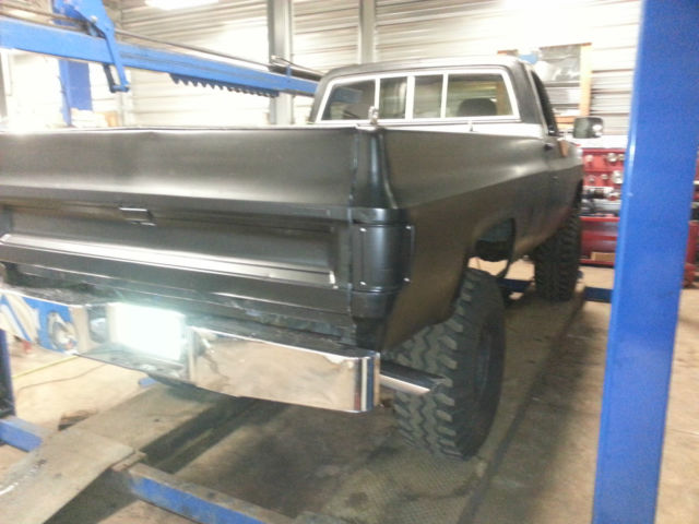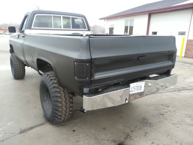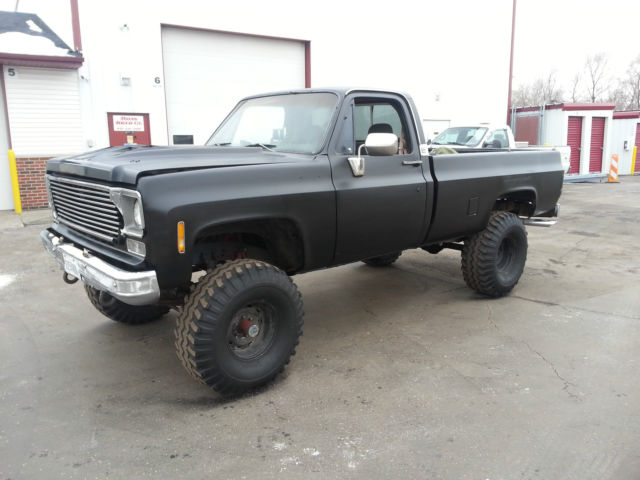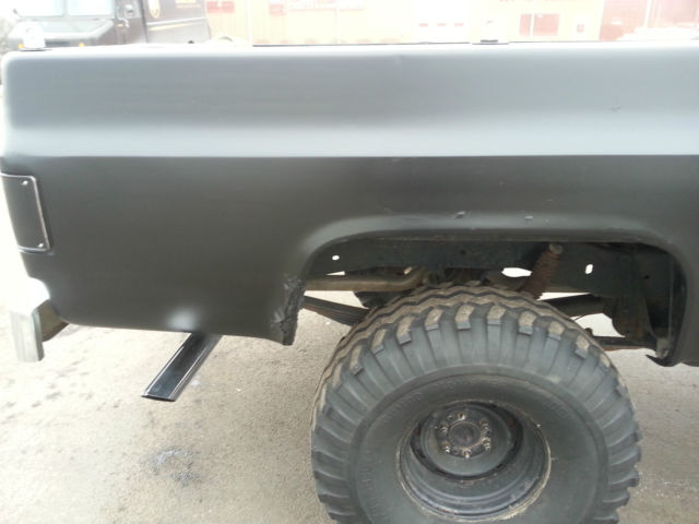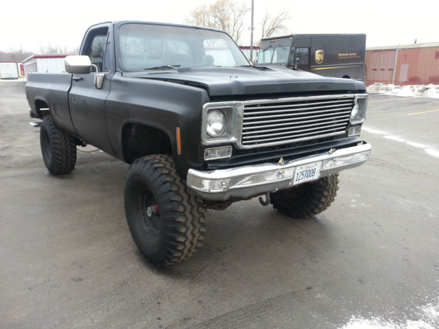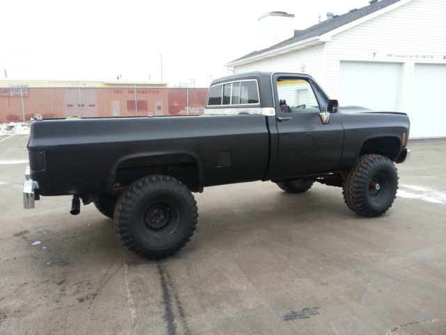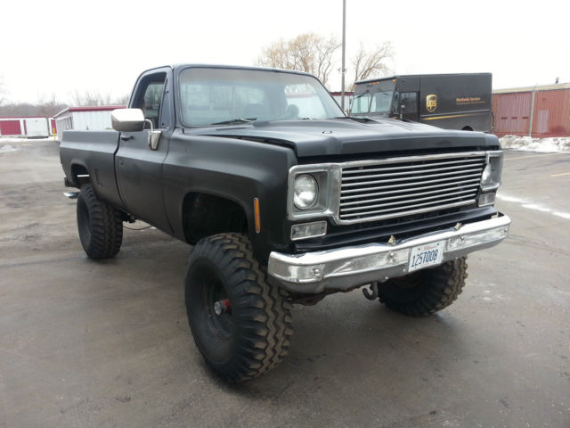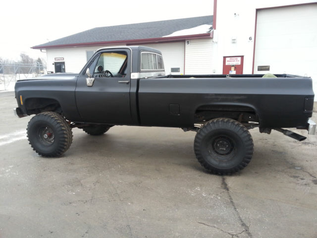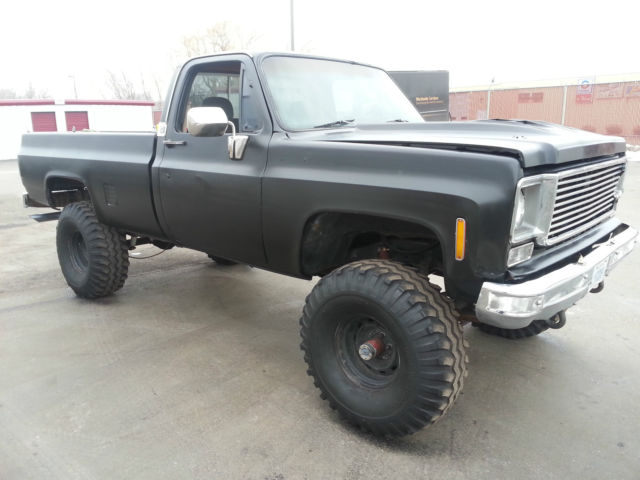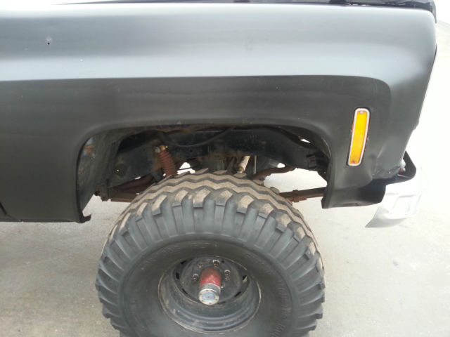 THIS IS RELISTED BECAUSE THE BUYER DECIDED NOT TO PAY, IF YOU BID ON THIS ITEM FROM OUT OF STATE YOU DO HAVE TO PAY FOR SHIPPING SO YOU MIGHT WANT TO CALCULATE THAT INTO THE BIDDING PRICE..... For SaleĀ 1977 Chevrolet K10 - 6-8" Lift - 4x4 - Healthy 350ci (rebuilt about 15K ago) - Wieland Dual plane intake - Edelbrock Carb - Headdman Headers (Long tube) - Dual exhaust - Turbo 350 Trans - Np 203 Transfer case - MSD Distributor - Manual locking hubs - Dual hood scoop - Black Rattle Can paint job - 38.5x15x15 Gumbo monster mudders ( not much tread and have quite a bit of dry rot, all hold air fine but a little scary to put on the road) - minimal rust Overall the truck is in good shape, I bought the truck about a year ago with a bad motor and a bunch of other misc issues with the intentions of restoring or turning into a mud bog / Driver but I have too many other projects and kinda lost interest in this one.... The truck starts, runs, drives, stops. If you plan using as a daily driver it will need another set of tires and some minor misc. I would recommend towing or trailer the truck but if you want to roll the dice its all on you if A tire blows out, The truck is sold as is no warranty. I do have a set of 3/4 ton axles I could include for an additional 450$ They have brand new rotors, drums, shoes, hardware, pads, seals, ect.... Needs - Tires - Radio - heater core - Carpet - Coolant temp sensor - Speedo Cable -