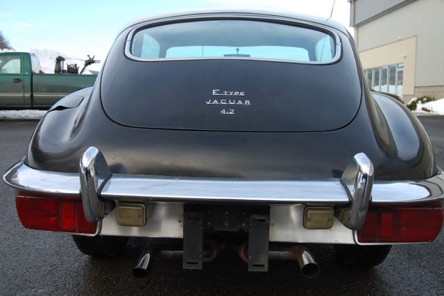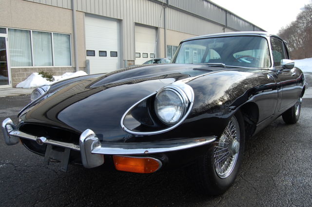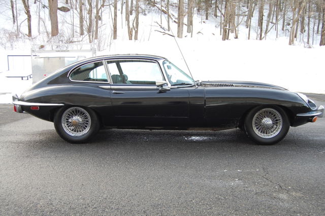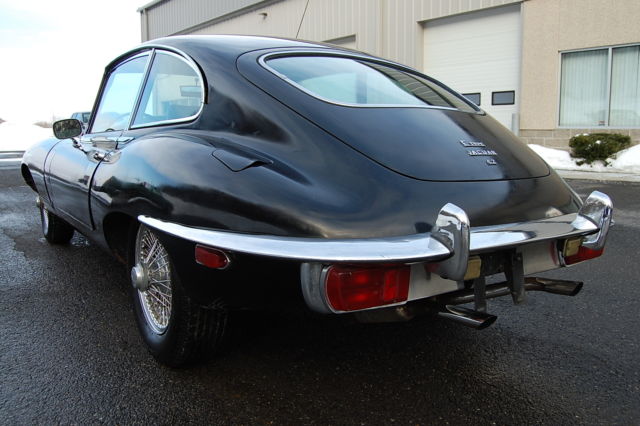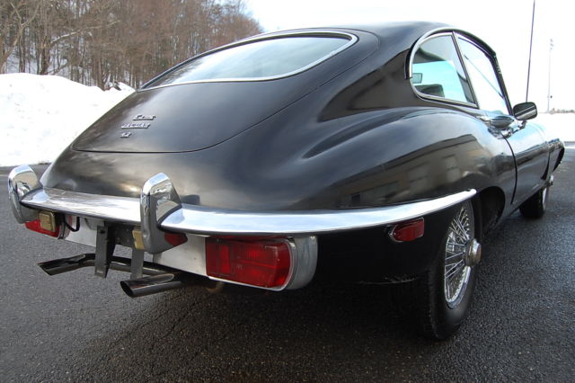 1969 Jaguar XKE E-type Series 2 2+2 Coupe Black with a Grey interior. 34,000 miles Service history, factory owners manual.Black which is a rare color on an E-type and probably one of the best colors besides British Racing Green, the black really sets off the chrome trim and wire wheels. Runs well, was used recently as a very frequent driver with many service receipts and original factory owners manual. The car also has the original radio still installed which is very rare to find.Interior is in very good condition,car does present well but the exterior paint has many flaws(dull spots, bubbles on hood), underside on drivers side floor has rust. Front bonnet fit is off where it attaches to the body Inspite of the flaws the car is striking in Black, it really looks great in this color!.Have the spare wheel with tire and the cover for the spare as well, I took them out to show how solid and clean the trunk is.These are just wonderful cars that really capture the joy of the English motoring experience from the 1960's. This car is really beautiful! Car is located 75 miles north of New York City in the northwestern corner of Connecticut. If you have questions you can contact me thru ebay or call 860-350-1140. I have a page with many highly detailed photos of the car, forzamotorsports with the usual com ending, if you are seriously interested please take the time to study the photos. International buyers welcome, I can help set up shipping to any part of the world but you must pay for it. Thank you for looking at my listing