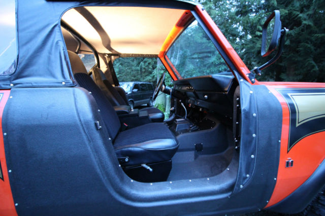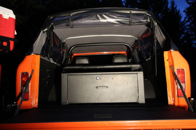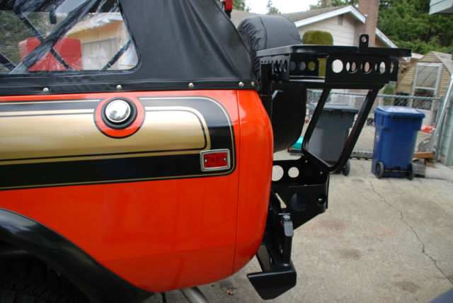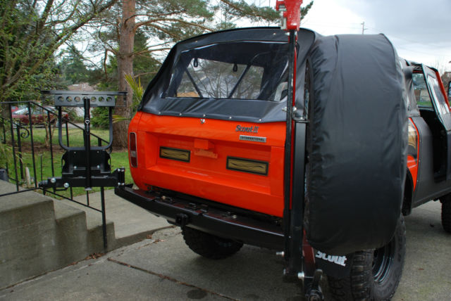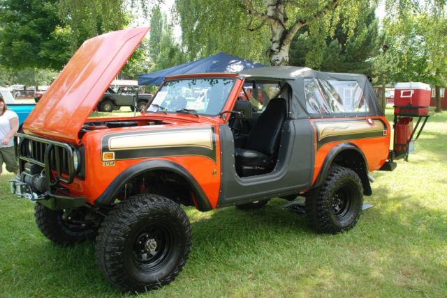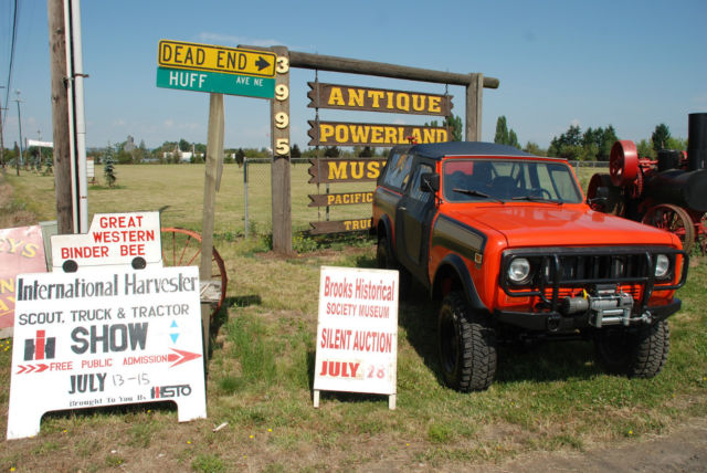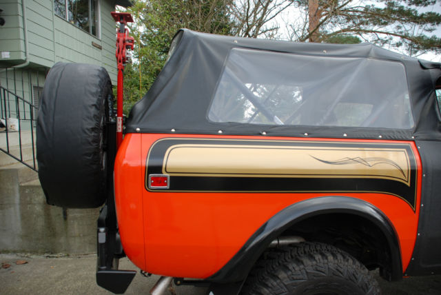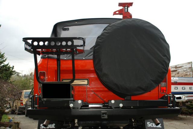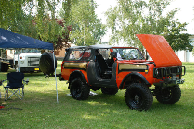 Up for sale is my prized 1977 Scout SSII. This is a genuine SSII as verified by the vehicle identification number. All exterior body panels have been powder coated International Orange. The front inner fenders and all the sheet metal on the engine has been powder coated I.H. Red. The soft top is a quality top made by Rhinyl Products. The soft doors were custom made a by a local outfitter. Linex has been applied to the interior floors, kick panels, SSII door inserts and inner rear panels. The high back front bucket seats and rear folding seat were professionally recovered. A Tuffy locking center console up front and a spacious rear locking cargo box gives lots of room for valuables. Has a stereo head unit installed in front center console that is hidden from view when locked. The stock radio in the dash is not currently hooked up. The headlight wiring has been upgraded and European spec (e code) headlights have been installed. Mini me LED rock lights light up the ground at night. Custom front and rear bumpers with a 12,000 lb winch up front. This vehicle has been stored in our heated garage since the restoration was completed. We have driven around the state on a few trips, and showed it at the 2012 West Coast Binder Bee where the vehicle won Best in Show. The engine has been updated and sports a Hamilton Fuel Injection system. All new hoses and belts were done during restoration, and an aluminum radiator from I.H. Parts America was installed. A 33 gallon gas tank was also added. The suspension was overhauled with stock springs sand blasted and powder coated. At this point a reverse shackle spring over axle conversion was completed with all new polyurethane bushings, and the Dana 44 front and rear axles were equipped with Spartan Lockers. Stock brakes all around with new stainless steel braided flex hoses installed. The dual exhaust is fully aluminized and has stainless steel Magnaflow mufflers. The 727 automatic transmission was completely rebuilt, a TF2 shift kit package was added, and I installed an extra capacity oil pan with a large capacity B&M external transmission cooler added up front. The stock wheels were sandblasted and powder coated gloss black. The tires including the full size spare are 33X12.50X15R Goodyear Wrangler MT/R kevlar. I am sure the new owner of this fine vehicle will enjoy showing it off. This listing is being sold as-is and includes no warranty. Buyer is responsible for any/all shipping costs if needed.