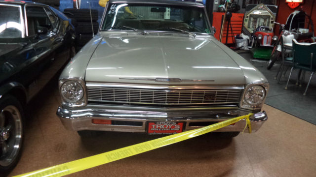 This is a really nice 1966 Chevy Nova 2dr. Hardtop. The car was built 3-years and has about 2,400 miles on it since built. The car has a rebuilt 350V8 with aluminum intake manifold, holley carb and mild comp cam. The transmission is a rebuilt turbo 350, rear-end is a 10bolt , new cross flow radiator, new heat and air conditioning unit. The body has had new floors and both rear quarter panels were replaced. New front and rear bumpers, new grill, new custom interior. It has bucket seats front and rear with custom center console. Drivers seat is electric and paint is basecoat clear coat with new vinyl top. New windshield and the rest of glass is original and most of molding is original as well. This is a ss clone. The car runs and drives great! Serious buyers only please. Speedometer needs repaired. Call Troy at 1-815-978-6914 with questions. Car has really nice newer cragars and tires. Great car for a great price!!We are a small dealer in Illinois and will be responsible for collecting tax/title/license fees. Out of state buyers taxes will vary. Thanks again and have a great day!