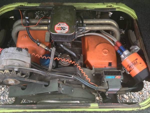 This is a great car for it's age. It has 28,530 miles on the odometer, but I'm sure it has rolled over at least once; therefore, it probably has 128,530 miles. This is a great running, reliable Volkswagen. It has a high performance duel port engine with a Weber 32/36 DFEV carburetor, K&N air filter, comp fire ignition and external oil cooler and oil filter. I added some more pictures too. If you would like to see the car or more pictures, let me know. Recently replaced parts: clutch and pressure plate, ball joints, tie rods, pushrod seals, oil and filter, and had a valve adjustment. Exterior: Painted Hawaiian Green in 2012; there are some small (barley noticeable) dents; new rubber seals around most of the windows; new windshield and rubber/chrome; tires have about 25 percent tread left; classic EMPI 8 spoke rims with and extra rim included. Interior: Seats, door panels, and headliner reupholstered in 2012; 3 gauge set (Oil Pressure, Oil temperature, voltage); Sony CD player; new sun visors; all interior lights work; everything is functional and works except the fuel gauge. The car runs great and it's fun to drive. You also get lots of looks and waves while driving it around (it's a head turner). A few things you should know: There is a small water leak under the dash when it rains. I think it's the windshield wiper motor arm that leaks. Also the tires are down to about 20 to 30 percent. The fuel gauge doesn't work. History: I'm not sure about the history of the car. I bought it from a couple that bought it for their daughter to drive to school. I've owned it for about 6 years now. I have previous owner receipts and recent receipts. CLEAR Title More pictures on request...just ask Payment: $500 dollar deposit within 72 hours after auction ends. Full payment withing 7 days after auction ends or at pickup. Shipping: Local pickup only unless you pay and arrange for a shipping company to ship it. However, I will drive or trailer it within a 100 mile radius of Chico, CA for a small fee.