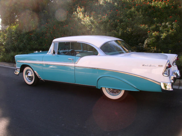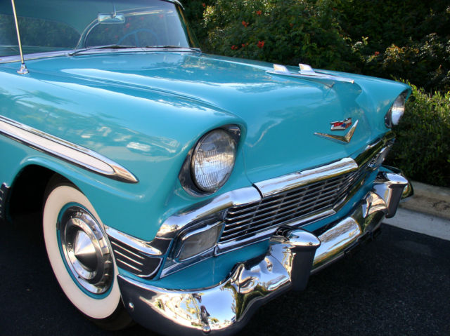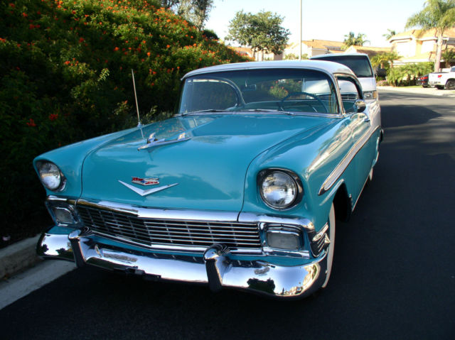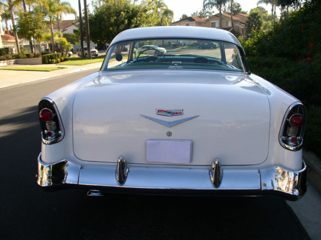 ALL STOCK ORIGINAL OLDER RESTORATION WITH VERY GOOD DRIVER QUALITY TRIM CODE CORRECT PAINT WITH CLEAR COAT, VERY STRAIGHT BODY, VERY DEPENDABLE STOCK REBUILT 265 V-8 WITH REBUILT 2 SPEED POWERGLIDE AUTOMATIC TRANS, STARTS AND RUNS OUT FINE, NO LEAKS, NO SMOKE, NO ISSUES, NEWER ALLUMINIUM RADIATOR,BATTERY AND NEWER STOCK FRONT BRAKES, TRIM CODE CORRECT INTERIOR IN EXCELLENT CONDITION, ALL CHROME AND STAINLESS VERY GOOD AND STRAIGHT, ALL GLASS EXCELLENT, ALL WINDOWS ROLL UP AND DOWN VERY GOOD, DOORS LINE UP AND CLOSE TIGHT, SOME VERY SMALL RUST BUBBLES@ LOWER CORNER OF PASSENGER DOOR, FENDERS AND ROCKERS ARE SOLID, NO RUST SOLID NO HIT FRAME, ALL FLOOR PANS LOOK TO BE SOLID, PASSENGER SIDE HAS BEEN REPAIRED IN THE PAST PROBABLY FROM A HEATER CORE LEAK, TAIL PAN HAS BEEN REPAIRED, TRUNK PAN IS CLEAN AND SOLID, STOCK RADIO BUT NEEDS REBUILT, HEATER NEEDS CORE REPLACED FAN WORKS, ALL LIGHTS AND TURNS WORK FINE, HORN WORKS FINE,COKER WIDE WHITE RADIAL TIRES HAVE APPROX. 75% TREAD REMAINING, VERY GOOD DRIVER TRACKS STRAIGHT DOWN THE ROAD NO PULLING, NO FUNNY NOISES, CRUISES AT 55- 70 EASILY. CLEAR CALIFORNIA TITLE AND CURRENT REG. IN HAND, CAN SHOW MOST TIME BY APPOINTMENT CAR IS LOCATED 25 MINUTES SOUTH OF DISNEYLAND IN SOUTH ORANGE COUNTY CA.
