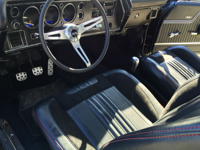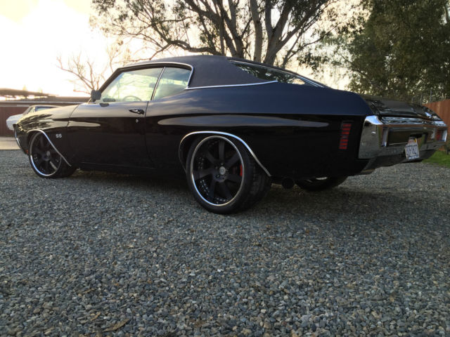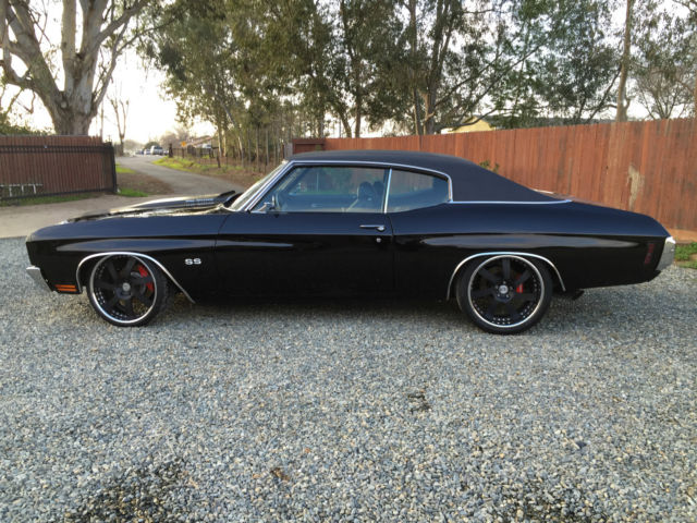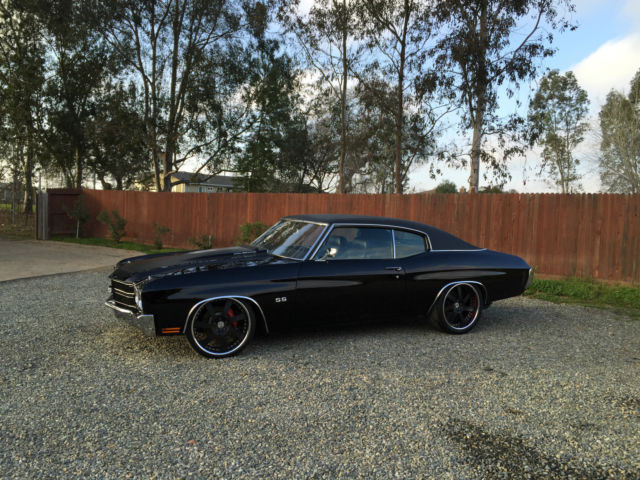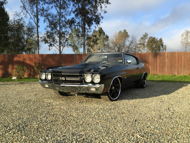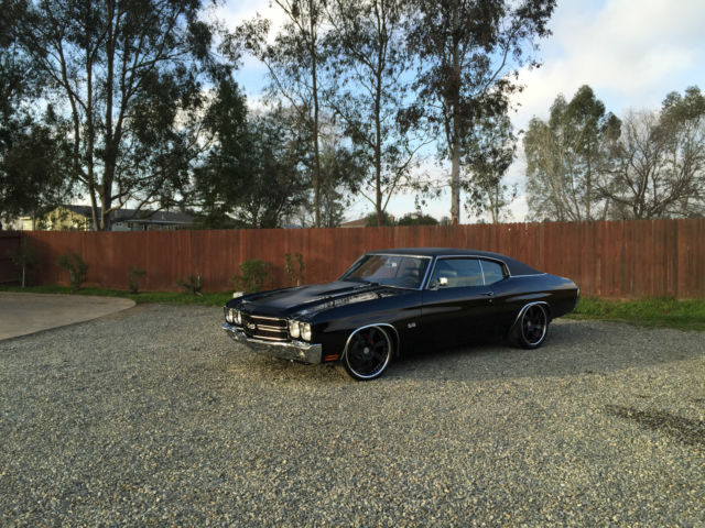 1970 Chevelle SS Resto Mod Up for auction is my fuel injected LS2 1970 Chevelle SS. This Chevelle is a ABSOLUTE beauty! Everytime you drive this car, you will get everyone trying to stop you or give you the thumbs up. That's a guarantee! It runs and drive so good. It has electronic throttle which makes gas pedal very responsive. It's turn key and will start every time. It runs and drive soo good with no issues at all. It handles great and gets about 20-25 mpg. No expense spared with this car. wheels and tire alone cost 8900$. HRE is one of the best wheel company out there. Its all complete already and needs nothing other than a new owner. Paint and body is immaculate with no dent or scratches. Paint is about a year old and was color sanded twice. Has a mirror like finish with no orange peel. It's jet black with a Pro Touring Flat black stripe. Please give me a call with any questions! Below is a few goodies this car has. 916 806-9774 Drive Train LS2 Engine (only 11K miles) T56 6 Speed Manual Transmission Hedman headers 4â Cold Air Intake Tube w/ K&N air filter Dual Exhaust Flowmaster 40 Series EFI Gas tank Aluminum Radiator Steel braided fuel lines Dual Electric Fans 255 Walbro Fuel pump Electronic Drive by Wire Optima Red top Battery Smooth firewall Suspension/Brakes/Wheels Front QA1 Coilover shocks/spring QA1 upper Tubular A arms QA1 lower Tubular A arms QA1 front sway bar QA1 rear sway bar Front Wilwood 13" brakes w/ 6 caliper piston Rear Wilwood 12" brakes w/ 4 caliper piston Fronts 20x9" HRE wheels 3 piece forged Rears 20x11.5 HRE wheels 3 piece forged Power brakes and Power steering Tires fronts: 255/30/20 Pirelli P Zero Corsa Tires rears: 305 /30/20 Pirelli P Zero Rebuilt 12 bolt rear end Auburn Positraction Richmond 3.73 gear ratio Interior Brand new TMI seat foam Brand new TMI seat upholstery with suede and red stitching Brand new TMI headliner Brand new Carpet SS Dash SS Door panel SS Steering wheel Dynamat Floor Integrated phone to stereo system w/ Bluetooth Pioneer CD/MP3/USB/Bluetooth player Pioneer 6.5 mids in front Pioneer 6x9 in rears Alpine type R 8" in custom deck lid Factory Bucket Seats Phoenix Gold 500 watt amp Brand new weather stripping throughout whole car. Exterior PPG Jet Black paint Hot Rod Flat Black stripes PPG Clear 4 coats of clear and hand sanded twice black vinyl top hood pins 4 wheel chrome molding Smooth firewall Cowl Induction hood with Flapper Front/Rear rechrome bumper Cons No ac/heater No windshield wiper