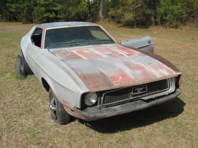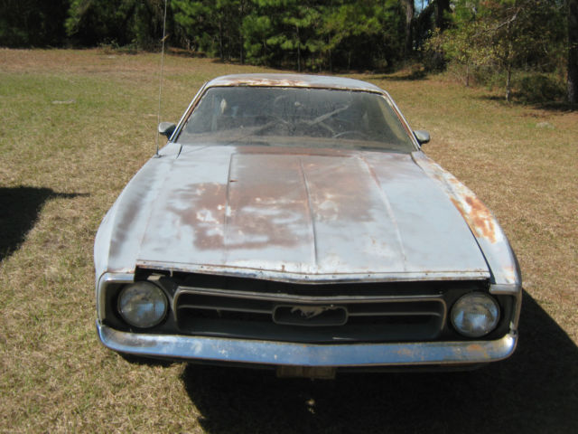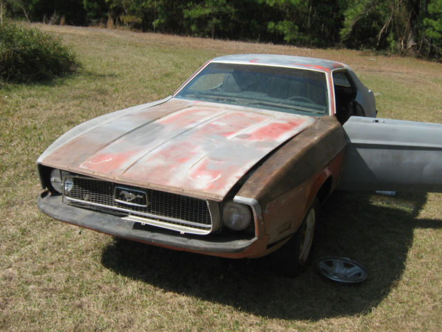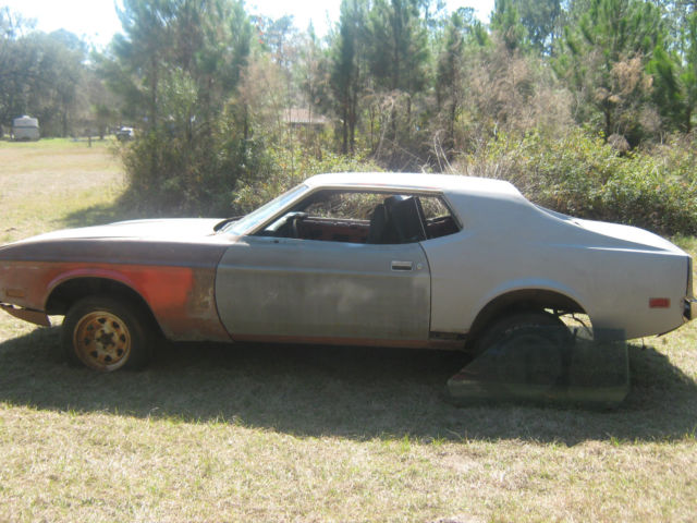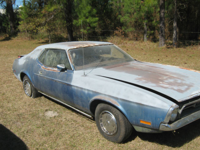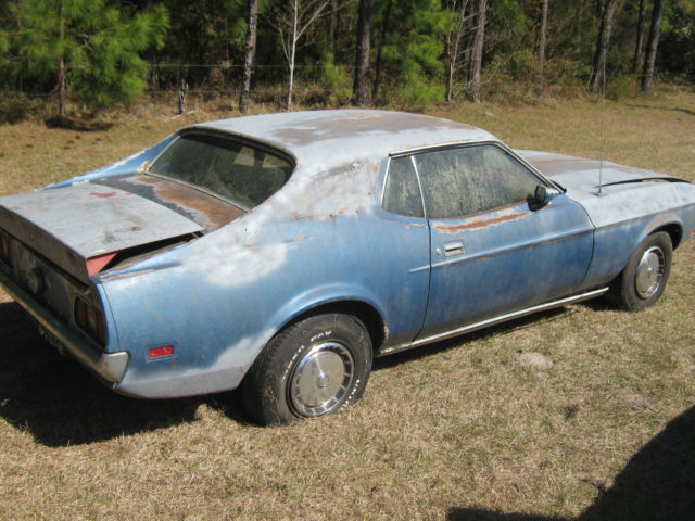 Told the wife I was interested in seeing 50 shades of Grey. ..she got interested, but I told her that in the paint section of Home Depot so she knew I meant primer. Chance to get 1 or 2 Mustang rollers. Build it back to original or use the body to make a Fastback clone. Top bidder will get their choice of the: -71 Mustang 302 Grande. A/C car originally - or the 73 Mustang Coupe The 71 Grande ( BLUE ONE ) The 73 Coupe ( PRIMER COLOR ) MANY PARTS ARE SHARED FROM 1971-1973 CARS. SOME ARE ALSO THE SAME AS FASTBACKS FROM THE SAME 1971-1973 YEARS Both have their interiors. Both have front and rear seats Both are rollers with original 9 inch rear ends, all glass, most all interior. The 73 has been through a full body restore, with only floorpan and small body area needing work. The 71 Grande has normal Mustang metal work needed, mostly in floorpans . No drivetrain. Will roll/steer by hand. Easy on and off a trailer. -Rockers are good on both -Torque boxes are good on both -Frame/rails are good on both -Underside of doors are pretty much good on both . Sold as-is, how-is. Will be glad to show it to you. Or well be glad to take extra pictures of either car. NO warranties expressed or implied. Feel free to give us a call 85zero-five97-one770.Not asking much , but both are worthy of restore. Thanks for looking. Best price for someone who wants both ...Will gladly help with transport to help you get lowest possible cost. .