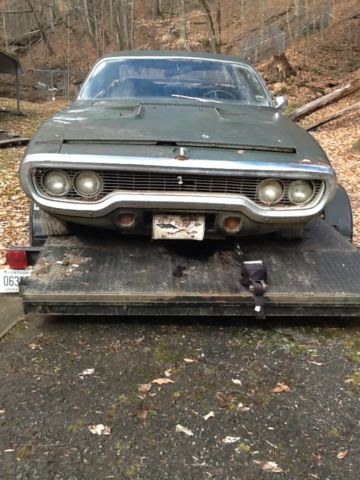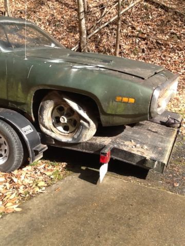 1971 Plymouth road runner, this car has been sitting over 25 years. As you can see lots of rust. Would make a great parts car or big restoration project. Not been tagged since 1984. I do have clear title in my name. You are welcome to come inspect it before bidding car in eastern Kentucky. The reserve is low so if you need a parts car or cheap project here it is.let me know if you have any questions I am including the vin and all that I can read on fender tag. Rm23n1g159335. Fender v41, n42, r11, gf7, b11, m2x9, tax, c14, ng1,d32, rm23. There are more but I can't make them out. I am relisting this car because of scaming buyer. Some questions that I had before was about rust in the truck and floors and frame rails. Again I say this car has been sitting for 25 years there is rust in floors and trunk, I have not been under it but I am sure there would be some rust on the frame rails also. Also I don't know if it has the orignal motor or not and don't know if it will turn or not. You can email me with any other questions you might have. Thanks for looking.