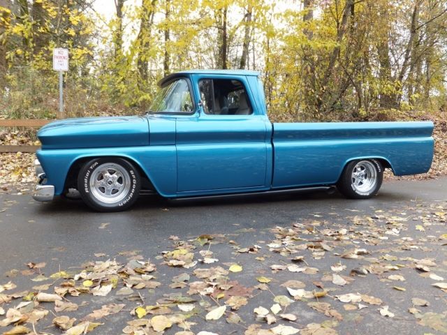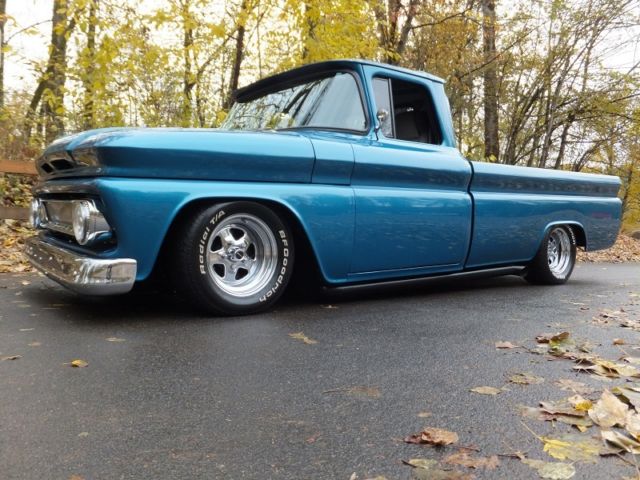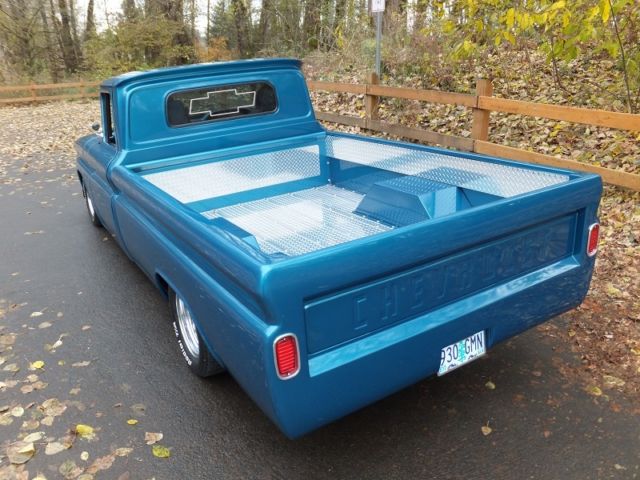 1962 Chevrolet C10 Full Custom Build Mint Condition SEE YOUTUBE VIDEO HERE ---- >>> http://youtu.be/9CwmOSG9frc Here's an opportunity to own a complete frame-up nut and bolt resto-modded C10 show truck. Build was completed in 2012, and she's been carefully driven a couple of times per month since. Everything is either new. No nut left unturned. A modded small block (327) V-8 mated to a TH350 rests under the beautiful deep turquoise paint. Paint and bodywork were done by Full Blown Kustoms in Eugene. Bagged suspension. Lots of custom touches makes her stand out from the crowd. She has won awards at local and far away car shows. This is a complete, turn-key crowd pleaser. Priced way below cost to build. Registration paid thru Oct. 2015. Kept in a heated garage and under cover. LIST OF OPTIONS: 327 Chevy with 10:1 compression 1.5 roller rockers 750 double pumper carb Hooker competition headers TH350 auto transmission Custom side pipes 3.08 rear diff Front disc brake conversion Power steering and brakes 275 size tires wrapped around Cragar Mag wheels Wheel locks Air-bagged suspension front and rear Two air compressors 3 gallon air tank 2 1/2" drop spindles Front anti-sway bar Optima Red Top battery Battery disconnect switch Auxiliary electric radiator and transmission fans Deep Turquoise custom paint inside and out Shaved door handles and tailgate Custom front grill Custom diamond plated bed LED tail lights and turn signals (front and rear) Remote controlled door openers Alarm system Sunroof Cloth bucket seats with power driver's seat Three point safety harnesses Center console Custom analog guages Air pressure gauges and ride height contols B&M Megashifter Pioneer sound system 8-track player! ** NO RESERVE ** Don't hesitate to email me, I'll be glad to answer any questions regarding this vehicle. Please know that bidding is a binding contract, if you bid, you intend to pay for the vehicle and fulfill your obligation. We welcome and encourage you, or your mechanic, to come and check out any vehicles before buying. All sales on classic cars are As-Is and all information should be verified by the buyer before purchasing. This vehicle is sold by a car dealership ( Carz Planet in Milwaukie, Oregon ) so final payment will be with them. Terms of Sale: A $500 non-refundable deposit via PayPal is required immediately after the auction ends. Vehicle is sold as-is. No warranty. No refunds!