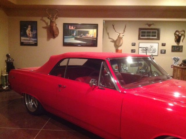 This show winning 1965 Chevy Chevelle Pro-Touring Custom Resto-Mod Features: New 572 Fuel Injected Keith Black Polished Aluminum Motor With 700HP Going Through The 4L80E aluminum Transmission Delivering Power To The 12 Bolt Chevy Posi-Traction rear axle while the electronic Gage's provide an instant pulse for this RED HOT ROD CONVERTIBLE CHEVELLE! The ride and handling is precise and accurate and features Hotchkis Suspension and with air ride suspension by "Airride Technology". The slotted 4wheel disc brakes by Wilwood brake system 6 piston front / 4 piston rear stop the Red Hot Chevelle as people stare at the red beast coming to a halt!! The clear coated paint that is arrow straight was rotisserie and blocked countless times as the 2 year no expense spared commitment to build this ultimate dream machine to ride, drive, handle plus win all the shows. Under the hood you will gaze in amazement at the 572 Keith Black Polished Aluminum Motor(cost-$38,500). With stainless steel hoses and aluminum pulley system and all billet parts, powder coated exhaust exits the fuel with just the right roar while the butnik wheels spin their beautiful aluminum spokes down the road (20s in the rear/ 18s in the front)! As you sit in the custom leather interior, with the top down, enjoying nature's breeze or with the top up enjoying the Vintage AC and settle in the comfort as long as you wish. No issues, no worries. The best of both worlds..... Chevelle is spotless inside, outside and underneath and has always been hauled by enclosed trailer, rarely used aside from personal pleasure. It shows as new in better than excellent condition along with everything makes a Pro-Touring the best in performance, acceleration, braking, and handling. The paint on this Red Beauty looks much better than the digital pics can capture. Please call (956)638-2689 Charlie. Must sell - daughter starting college. Over $135K invested. Don't let this one go..it is going to sell to highest bidder. Bid with confidence....on the Red Beauty of a Beast!!!! ***More pictures upon request***
