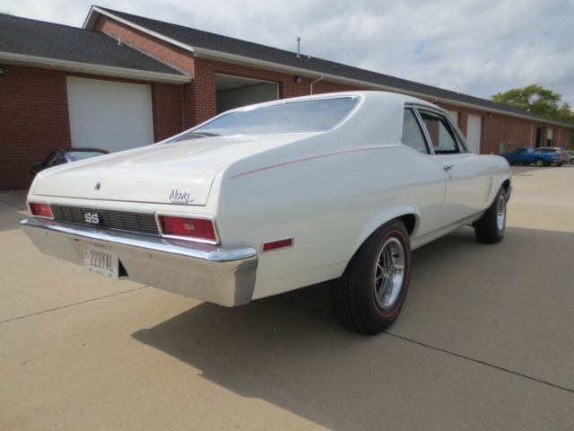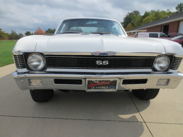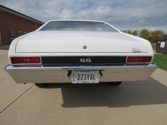 This is a beautiful 1970 Chevrolet Nova SS 396. The color was changed to Classic White (paint code 10) from Forest Green (paint code 48) and is flawless and deep . The car was completely restored in 1999 and has very few miles on it since then. The car runs and drives like new. According to the Nova Resource website, only 1802 of these Novas were built. The drivetrain is the numbers-matching L-34 engine, transmission and Posi rear-end. However, the rear gear was upgraded to a 3:73 from the original 3:31 ratio. Stampings on the engine are T0311CTX (396/350, 4sp), Tranny is P0C60B (M-21 Close-Ratio), and the rear-end is CBS0316 ( 3:31 Posi). This car is easily a #1 show car that can also be street-driven and enjoyed. No expense was spared putting this car together; rides and handles like new. You would never be able to duplicate it for the auction price. In-person inspections are welcome. For questions or more information or pictures, please call Bill Baltes at 440-748-9900, M-F, between the hours of 10 :00am and 3 :00pm , EST. If I am not available please ask for Sam. I will assist with shipping details if necessary but the shipping cost is the responsibility of the buyer. The car is for sale locally and I reserve the right to end the auction early for any reason. Thank you for looking⦠Payment arrangements must be made within 48 hours of auction end or the car will be relisted and negative feedback left, sorry.