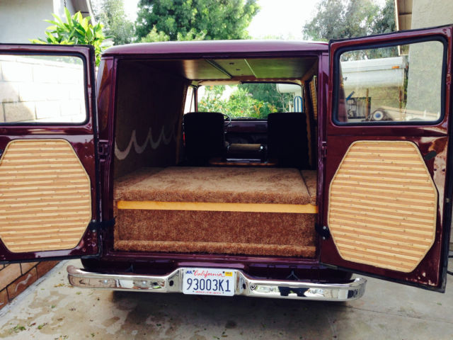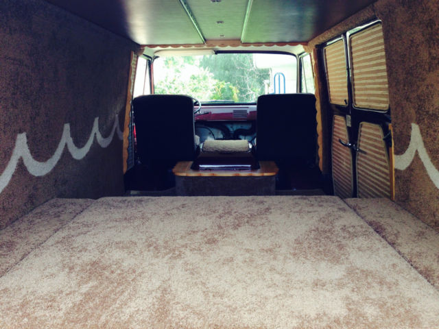FRESH BODY AND PAINT RESTORATION. NEW TIRES AND WHEELS WITH RECENT SAFETY INSPECTION INCLUDING BRAKES AND LINES ETC. RECENT COMPLETE TUNE UP. ALL HOSES AND BELTS INSPECTED AND REPLACED AS NEEDED. RADIATOR PULLED AND CLEANED. PICTURES OF PRE BODY AND PAINT WILL REVEAL THIS VAN WAS INCREDIBLY CLEAN AND UNDAMAGED. THE CUSTOM INTERIOR WAS FINISHED BY A MASTER CRAFTSMAN WITH ALL TOP MATERIALS. THE INTERIOR WAS DONE TO MAINTAIN AN INCREDIBLY TASTEFULLY DONE "SURFER VAN" THEME BUT WITH MUCH MORE DETAIL AND QUALITY. MY BEST DESCRIPTION OF THE INTERIOR FRAMEWORK BEFORE INSULATION AND COVER MATERIAL IS BEST REPRESENTED AS A WOOD BOAT HULL STRAKE TYPE SUPPORT WITH MUCH LIGHTER MATERIAL. THIS CREATED FLAT SIDES FOR MATERIAL COVER. THERE IS SO MUCH MORE TO LIST THE BEST WAY TO DESCRIBE IS SIMPLY "MUST SEE". I AM A COLLECTOR AND RESTORED THIS VAN TO REPRESENT THE SURFER OR OUTDOORSMAN. THE INTENT WAS TO FINISH IT AND OFFER FOR SALE SO THAT SOMEONE COULD ENJOY A WONDERFUL, EXTREMELY COLLECTABLE PIECE OF AMERICANA.