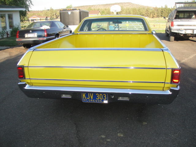 Selling this very nicely restored El Camino from my brother's estate. My brother served in the US Army and did a tour in Viet Nam in 1969 - 1970. He was a Crew Chief on a helicopter and a multiple Purple Heart recipient. He died recently from complications of the liver transplant he received over 20 years ago, from being poisoned at work. He had a passion for nice cars, motorcycles and "toys". He took very good care of things. This car has been in the high desert of Oregon for many years, I don't see any rust on this car. The bed is straight and rust free, one of the best you will see anywhere. This car had a frame off restoration by the previous owner and has had very few miles put on since that time. It has a Corvette 350 cid engine bored out to 383 cid with a roller cam and a Camaro Tuned Port Injection system. TH700-R4 four-speed automatic-overdrive transmission and its derivatives have nearly become the universal favorite of hot-rodder's. All this is routed to posi-traction rear end. Sorry I don't know the gear ratio at this time. The posi rear end is mounted with Revolution Racing Coil-Over adjustable rear shocks, and rear stabilizer bar which helps keep the rubber on the road in all conditions. Adjustable so you can set the ride to your liking. Keeping all that horse power cool is a four (4) core radiator. While you are looking under the hood check out the wiring, there is not a wire out of place. Neat and clean best describe the detail my brother was known for. And the wiring has been redone with a Painless Performance Products. With disc brakes all around, the SS hood and beautiful black bucket seats, this car is a real head turner. Also, it has an electric fuel pump that has a switch for theft protection. This el Camino has been featured in local car shows and won. And it can be your daily driver or show car in your local car show.If this car is sold out of Oregon, the license plates are not included in the sale.