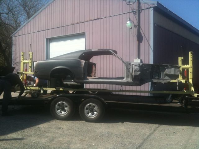 1970 Ford Mustang FastBack RESTO MOD This is currently a rolling chassis buyer must arrange shipping or pick up The mustang was put on a full rotisserie and bead blasted. Both Rear quarters were replaced and one patch was done on the floor. The rear valance is also brand new. The body of the car is in excellent condition. No rot what so ever. The mustang was primed and the new suspension was welded in. No body work was ever done. The shock towers were cut out for the suspension Comes with 2 brand new dynacore doors. Front end pieces Interior plastics Front and rear seat tracks and frames (the leather and padding on the seats are in bad shape) All the glass except the front windshield. Both front fenders Original hood (hood has a hole cut out for a scoop) 2 hood scoops 3 magnum 500 mustang wheels Trunk lid (trunk lid does have a ding in it) Ford C4 3 speed Automatic Transmission TCI Mustang II Front end Heidts 9'' 4 link rear Original suspension (they are out of the mustang sitting outside, they are included in the sale but if you don't want them you do not have to take them) Original axles (they are out of the mustang sitting outside, they are included in the sale but if you don't want them you do not have to take them) and MANY extra parts!!!!! Front Suspension Details are listed below: TCI Mustang II 64-70 IFS Complete package Billet rebound adjustable coil-overs POLISHED 12'' drilled and slotted rotors Upper control arm and Coil-over mount plates GM calipers Power rack and pinion steering Upper and Lower control arms steel Small block engine mounts Steel inner fender panels All reinforcement plates Mounting hardware Rear Suspension Details are listed below: Heidts 64-70 Mustang 4 link Heidts upgrade to billet single adjustable coiler shocks Heidts 9'' housing with brackets welded Heidts 9'' 31 spline axles (PR) Heidts Rear brake kit 12'' smooth rotors, GM calipers Internal Drum park Brake Does Not Include Motor!!!!!!!!!!!