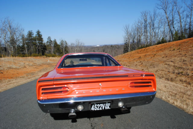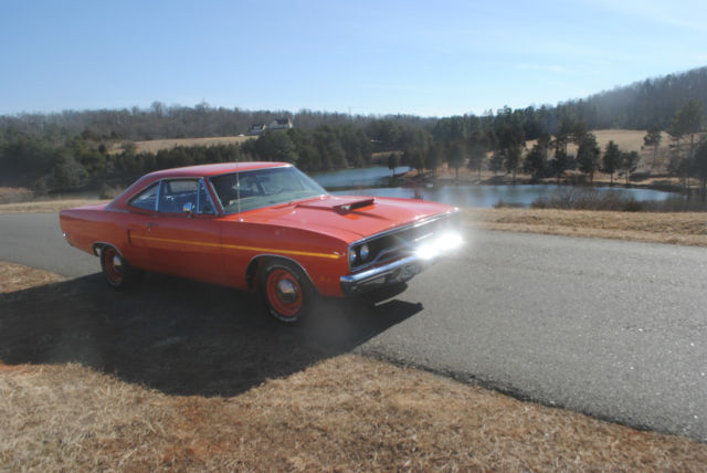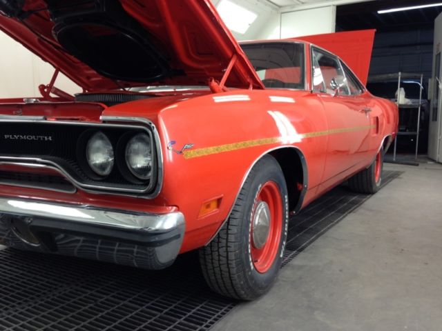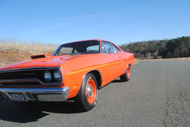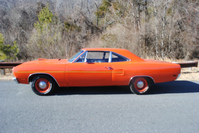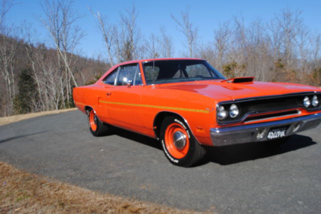 FULLY RESTORED 1970 ROAD RUNNER (Matching Numbers original) Just completed 2 year rotisserie Restoration of a true factor EV2 road runner Car was stripped sand blasted and metal replaced as required NO rust no issues car has been meticulously inspected show ready! Original rebuilt 383 335hp 4-BBl v8 True Hemi orange Car Original drive train 3- speed torqueflite727 hd automatic rebuilt original hd rear end rebuilt exterior is collectors /show quality all jams and under body painted and cleared factory hemi orange PPg base- clear, 10+++ coats Car is in perfect shape -Professionally restored -over 70 k invested in rebuild new 3 inch magna flow exhaust Bilstein shocks and stabilizer kit front and rear New bushing rubbers and linkage New trim moldings,seals,rubbers New points , plugs ,distributor cap, ignition coils Freshly restored Interior factory specs New Brake drums lines and shoes New mounts and braces Everything is either original new or nos car is in excellent condition Sounds extremely nice and runs super strong and true All cars built through company sell and sell fast . We build the nicest NEW BFGS 215-70-15 ALL AROUND BEAUTIFUL HAVE 1000S OF PICTURES IF WANTED CONTACT ANTHONY 4342491767 clean and clear va title vehicle sold as is without warranty and have right to pull item since its being listed locally as well.THANKS