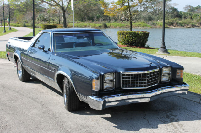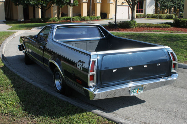 1979 FORD RANCHERO GT V8 ENGINE 351 AUTOMATIC TRANSMISSION EXCELLENT CONDITION THIS VEHICLE IS IN EXCELLENT CONDITION AND IS A REAL DRIVER ALL SYSTEMS ARE FUNCTIONAL TILT STEERING FACTORY A/C - ICE COLD POWER STEERING POWER WINDOWS - ALL WINDOWS WORK POWER SEATS - ALL SEATS WORK HAS SPARE TIRE TOOL KIT VERY CLEAN UNDER CARRIAGE - HAS NO RUST OR CORROSION THE REAR BED AND TAIL GATE IN EXCELLENT CONDITION VERY SMOOTH SHIFTING AUTOMATIC TRANSMISSION V8 351 ENGINE VERY POWERFUL AND SMOOTH RUNNING ALL FOUR MATCHING TIRES BF- GOODRICH IN EXCELLENT CONDITION VERY STRONG BRAKING SYSTEM IN EXCELLENT CONDITION REAR TAIL GATE AND BED IS RUST FREE AND PROTECTED WITH LAYER OF UNDERCOATING NEW SHOCKS NEW GAS TANK TITLE FREE AND CLEAR AND IN HAND THIS VEHICLE IS IN OUR WAREHOUSE AT: BOCA RATON, FL 33432 TO SET UP APPOINTMENT FOR INSPECTION OR TO CALL WITH ANY QUESTIONS PLEASE CONTACT: DAVID LEVY 561-251-8604 WE DO HAVE THE ABILITY TO SHIP WORLDWIDE IMPORTANT TERMS AND CONDITIONS Our eBay feedback is 100% and for a good reason. We describe the items for sale very accurately, your interpretation might be different from ours. Should you have any concerns as to the mechanical or cosmetic condition. We will gladly assist with inspections from outside parties like CARCHEX. All legal matters including mediation and law suites are governed by Florida law and must be executed in Palm Beach County,Florida. By purchasing ANY of our advertised cars,trucks,motorcycles,bikes and boats you agree and understand completely that the advertised Item is being SOLD AS IS. Except for any guarantees or warranties stated in this listing,the listed item is sold as is and the seller shall not be liable for any defects in the motorcycle, latent or otherwise. If you are not sure about something, please ask! Do not assume anything not listed is included. We reserve the right to cancel bids for excessive negative feedback. We reserve the right to end the listing if the Item listed is no longer available for sale. Buyer is responsible for pickup or shipping of this vehicle. Florida residents have to pay sales tax and DMV transfer charges. Out of state buyers are responsible for registration and sales tax in there residing state. There is a $175.00 dealer fee to cover all selling expenses including FEDEX cost of all documents. If you wish to have it shipped using a service, we will gladly cooperate
