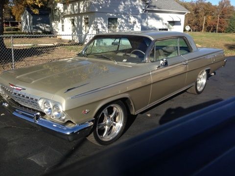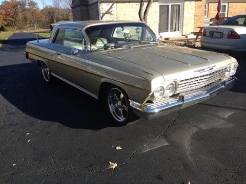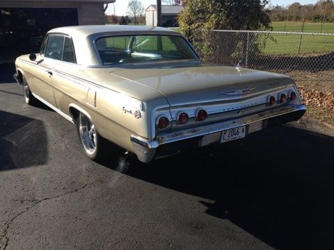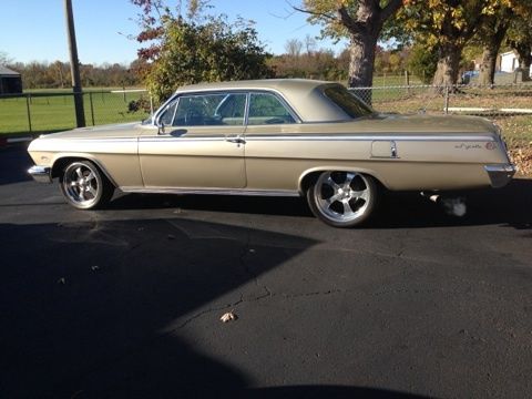 For Sale - 1962 Impala SS, This is a rust free car that lived its life in California then was purchased by a collector in Michigan, then I got the car. The body is laser straight and was refinished in the original color for this SS. The firewall retains the original paint. The Stainless trim is in great shape and is complete. Bumpers are very straight and nice chrome, Wheels and tires are very good shape and running 17 in front and 20 in the rear giving the car a nice rake stance. Car has a later model 454 big block and a 700R4 auto overdrive trans giving this car excellent fuel miles and smooth running on long trips. This is a very nice driver quality car- borderline resto mod with the upgrades to include power disc front brakes. All the upgrades done have enhanced the driveability of this car. The interior is mostly original 1962 and in great shape. It does need a few items fixed in the dash area. I simply left them alone so as to keep the interior original. An easy weekend fix for all that isn't 100%. Car is for sale locally and I reserve the right to end the auction should it sell here. PLEASE do not bid if you are just playing e-bay games, unsure if you want the car, don't have the money, etc. etc. Your bid is final.... no excuses. Thank you and please call with any and all questions after 5pm 618 983 8488