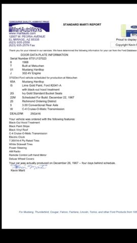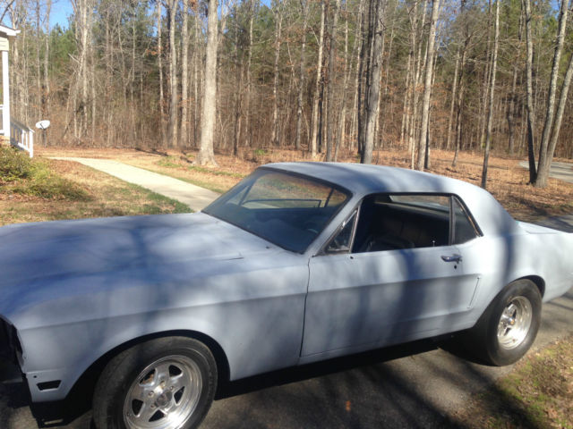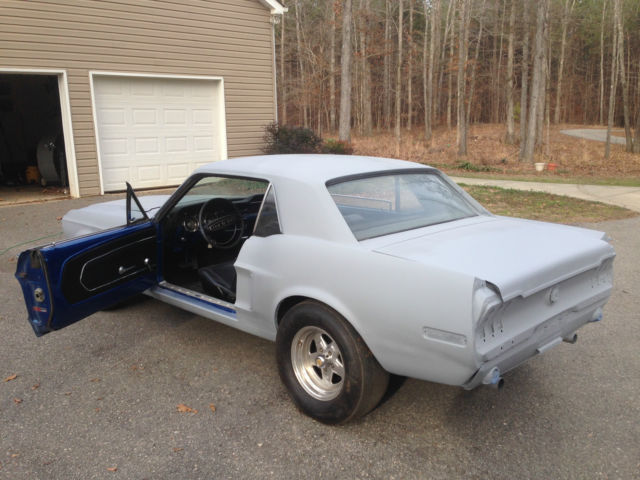 This is a 1968 J code that has been upgrade to a 351 Cleveland. It is automatic trans. It has been stripped to bare metal and rust cut out and replaced. (under battery and lower half rear quarters is all) I have pictures of process along with many other pictures that I can send. It is a very strong car and I have all the parts to finish it. It is in the early stages of priming and has 3 coats of grey primer, some body work will be needed to make it a show car mostly sanding but there is still a few small dents that would need to be fixed. The inside has been painted a blue color and I have the paint to match for the outside and will be included with the car. Here are a few of the highlights of the car. New Fuel Tank New Shocks and Struts New Head Liner New Dash Pad New Locks and Ignition Switch New Tail Lights New Front Bumper and bracket (still in box from Mustang Unlimited) all chrome trim Front and rear disk brakes with posi trac locker 9" rear with 3.50 gear Aluminum deep trans pan hooker super comp headers 1.73 adjustable roller rockers/studs and guides 950 Holley hp carb Hi performance 4 flu aluminum radiator with electric fan 7 qt oil pan with windage tray Holley electric fuel pump New Ford racing aluminum fuel line Lakewood traction bars I also have new door handles for inside and out, I am not looking for trades, and I don't need help selling this car. It runs strong and can be driven onto the trailer. Buyer is responsible for pickup. Bill of sale will be provided. Please feel free to contact me with any questions and I will answer as best as I can. The fuel gauge does not work but I have tested it and it is the sending unit and costs $50 at parts store. The car runs and drives strong and could be put on a track very easy or just driven around. Included in the pictures is the Marti Report and a copy will be given to the winner. If wanted I can email a video of the car starting up or driving if needed. Sounds great!!