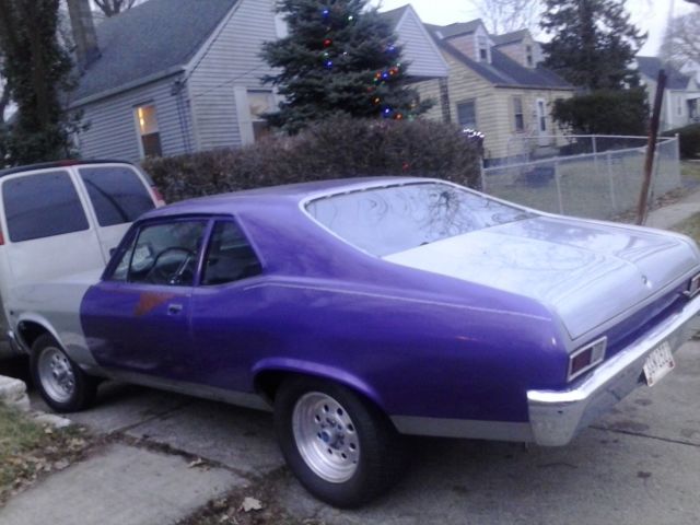 The nova was a old drag car that was made a street driver had new rear end bearing good breaks 355 gears exhaust has over $800 alone new big tude hooker super comp headers/flowmasters 215 dart heads/vodoo cam 60105/new alternator/9" ford rear end/new tires on weld rims/balanced race drive shaft/has one race seat /had 6 point cage now 4 point floor plate still welded in/new quarters but overlapped looked good on body /I went around the nova with a magnet seems solid some filler on wheel tubs not quarters great solid boxed frame ladder bar setup with leaf spring moved in for planting wheels open on trades with cash being sold local 513/290/5535 nova has a new th350 but need a higher stall speed of 3500 .This nova sound nasty look up vodoo cam 60105 many videos on this cam but none on a 412 sbc can be traded for cash and trade but trade price is $9000 {barter}nova will be going to paint shop if not sold/barter off I will get off the fence and finish this nasty nasty Beast.