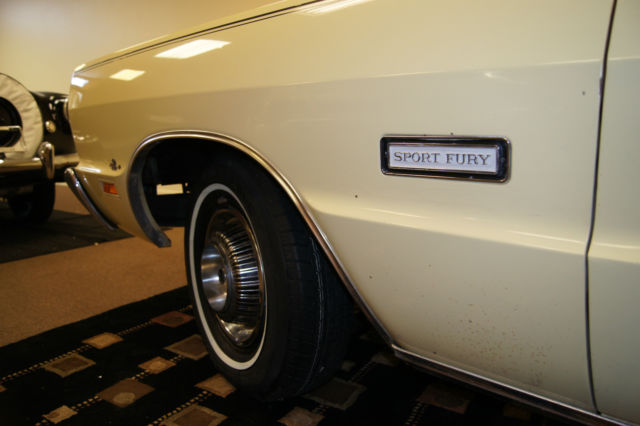 Here is rare Mopar that you don't see very often. A 1969 Plymouth Sport Fury with only 366 miles. Although this rare car has incredibly low miles. It does have a few spots of minor surface rust with only one small bad spot on the trunk lid. The rest of the car is very solid. From what have been told about the history is that the owner of the dealership kept this car for many years and probably never titled it. Then at some point someone purchased it and stored it in not in the most ideal location, but never drove it. The past 15 years or so it was stored in a dry warehouse in Peoria, Ill. It's all original, except for 3 out of 4 tires. The left rear is the only surviving tire, except the never used spare. It also has the original dual exhaust system, except for one tailpipe is missing. The interior looks and smells like new, except for a split on the drivers seat at the seam. There doesn't appear to be any dents, and the all original paint shines very nice. The 383 Super Commando runs and drives like new. I'm not sure what else to say about this car. If you have any questions feel free to ask. Note: The title say it has 400 miles, not 366. Also, If it meets the reserve and sells. I will be out of town from February 15 to the 22. So it will have to be picked before or after those dates. On Feb-01-15 at 14:12:59 PST, seller added the following information: To answer some questions... The underside really looks very nice and solid. It appears it was undercoated when new. I was thinking about the condition of the car. I have no doubt the miles are correct. Although I believe it might of been covered and stored outside for a year or two, maybe. That's my guess. Also, I not going to disclose the reserve. Sorry. On Feb-02-15 at 08:56:50 PST, seller added the following information: On Feb-02-15 at 09:05:38 PST, seller added the following information: