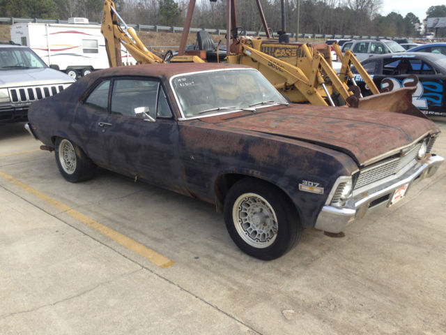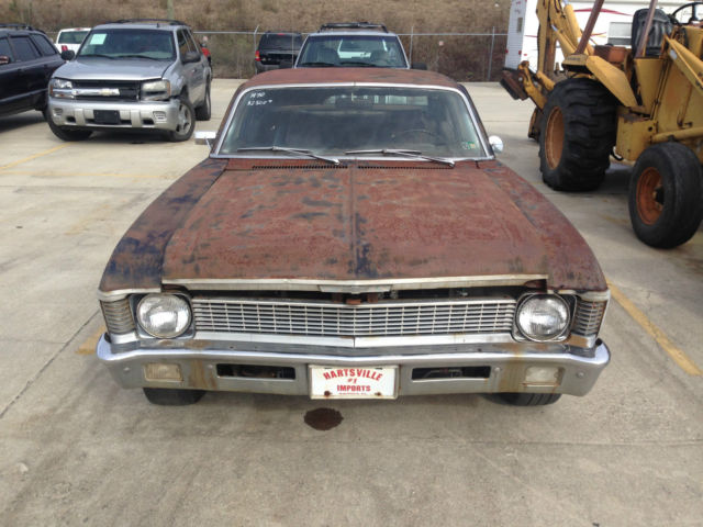 1970 Chevrolet Nova. Factory Numbers Matching Car. Base Model Car. 307 V-8 Engine, engine will crank and run. When I say crank and run...you have to pour a little gas in the carburetor and it will crank. Engine runs good, no smoke, no noises. Automatic transmission. Car will move forward and backward. I have not tried to drive it any distance at all. The Interior... Front seats are NOT Nova seats, Just something to fill the space. REAR Seat is original. NO Carpet. Door panels are missing. Headliner is there, but needs repair. All Glass is good. Dash pad is cracked. The Body needs repair also. Front fenders have rust in the bottom of each fender. Rear Quarters have rust in both, Both quarters will need repair. Trunk pan is rusty. Driver floor pan is rusty. Rear floor pan on passenger side is rusty. Car has surface rust over most of the car. This southern sun and heat is hard on older cars and this one is no exception. =================================================================== I have a Clear South Carolina Title in hand. SOLD AS-IS = NO WARRANTY = NO REFUNDS = NO RETURNS = JUST BUSINESS. Payment Must be; CASH IN PERSON -or- PAYPAL -or- BANK WIRE TRANSFER ONLY!!!! NO CHECKS!!! NO CHECKS!!! NO CHECKS!!! I REQUIRE A $500.00 DEPOSIT THROUGH PAYPAL AT AUCTIONS END. IF YOU CANNOT PAY A DEPOSIT -OR- DO NOT AGREE WITH PAYING A DEPOSIT...PLEASE DONOT BUY MY CAR. I can have this car delivered to You Anywhere in the GREAT U.S.A. {lower 48 only} for just $1.00 {one dollar} PER MILE = ONE WAY FEE. I will need Your TOWN AND ZIP CODE to give a true delivery quote. Car is Located in Darlington S.C. 29532 Any questions....Call or Text 1-843-496-4535 Thanks for looking.