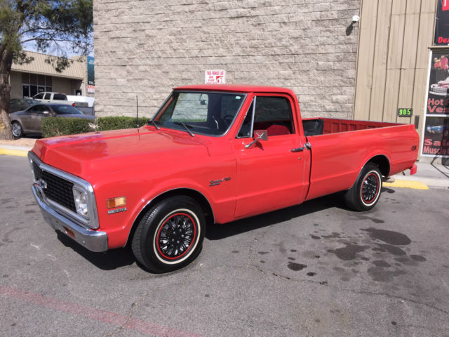 Nevada Classic Car Dealer #40339 , VIN # CE141Z663123 We just got in this Super Clean, Straight, Great Driving 1971 CHEVROLET CUSTOM 10 DELUXE PICK-EM-UP TRUCK ! A friend in our car club needed to let one go and we will pass ths bargain along to you ! Nice red paint with just the usual minor nicks and digs, but mechanically it's a champ ! Power Steering, Modern AC, Cool wheels & tires, trailer hitch and even an original 8 Track/Radio combo player. All windows work and glass is clear. This truck runs and drives like a dream... smooth ride and great running quiet motor.. floats over bumps, power steering makes it a breeze to drive. This truck is so nice, could be actual mileage but as with all old cars, True Mileage Unknown. Can't say enough good things about it.. just buy and have some turn-key fun with this beauty ! Please note, I am a boutique classic car dealer in Nevada, so any Nevada residents who purchase this car to register in Nevada will need to pay a 8.1 % Nevada sales tax and a $99 documentation fee... but I have taken this into consideration in the great-value pricing of this car. Come to Vegas to party and drive home an incredible vehicle that is quite a lot of class, fun and quality for the money ! Best, Steve in Las Vegas cell 213 500 8619 http://www.hotrodcitylasvegas.com/?page_id=32 FINANCING AVAILABLE Through JJ Best with just 20% down and upon approved credit. DISCLAIMER: All vehicles are USED and sold AS IS and WHERE IS. We encourage you to come to Las Vegas to inspect the vehicle yourself or arrange for a qualified mechanic to go over it for you. Because there is not any Refunds or Warranty expressed or implied. We have revealed all details to the best of our knowledge. We are not responsible for any defects not mentioned by our staff or in our advertising. Any and all repairs and hidden problems that occurred previously or later, insurance, taxes, registration, smog requirements, issues at your stateâs DMV and shipping are also the responsibility of the buyer. The Vehicles we sell are vintage and/or old school and a certain amount of knowledge of classic cars and auto mechanics is advised.These are not brand new turn-key vehicles so donât expect them to be perfect. Please note that no sales are final until full payment has been made and a sales contract has been signed by both parties.