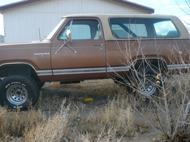This Dodge Ramcharger is a Classic/Collector Vehicle . The two-tone paint is in good condition. The only damage is minor on the right front lower quarter panel. It has a roll bar in side along with extra seats and seat covers included. The front drive shaft is not connected but is in the back of the vehicle to be installed. The gas 3 speed engine has dual exhausts. There are no rust problems on the vehicle. However, the tires do need to be replaced soon and there is no radio in the vehicle. The vehicle runs and can be driven away. This would make a classic collector vehicle or used for Hot August Nights. It will also tow your boat or other toy or can be just for a fund recreational vehicle. This vehicle was left to me by a family member after the passing of my uncle who was a Mo Par fan and had planned to completely remodel it. I am unable to use it any more so would like someone to enjoy it. The vehicle is located in Silver Springs, NV and is sold as is, where it is. It can be driven away but must be picked up within 30 days after purchase. It is titled,and registered in my name .Please call with any questions. Britta 775-434-4208 or Debbie 775-350-5041.