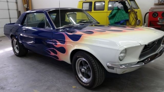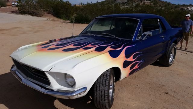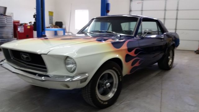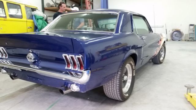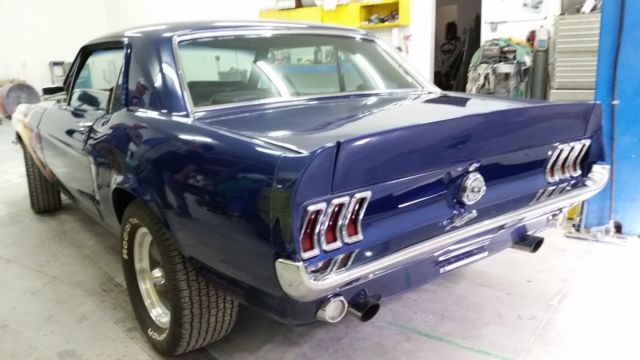 1968 Ford Mustang Coupe. This vehicle was built by Kodiak Advanced Automotive Technology in 1998 for the purpose of a charity raffle. There were 1000 tickets sold at 25.00 each. The winner drove the car sparingly and then parked it in early 2000. There is very few miles on this vehicle since it's restoration. I do have pictures and receipts that will go with the sale documenting the raffle of the vehicle. They started with a clean 1968 mustang coupe with a 289. Stripped the body, added a custom Shelby deck lid and extensions, trio primed, tech primed, and added a royal blue with flames custom base coat / clear coat paint job. The jambs, engine bay, and parts of the undercarriage were all painted royal blue at the same time. They then replaced the 289 with a 351 Windsor, bored 30 over, PAW Super Stock Crank Kit, Flat top pistons 10.5:1 compression. Balanced crank and rod .010 under. 69cc heads with 3 angle valve job, Edelbrock Performer RPM Intake, lifters, and cam, Edelbrock 750 carb, Mallory Unilite electronic ignition distributor, PAW high volume oil pump, Edelbrock valve covers, Crane 1.6 ratio roller rockers, Double Roller timing chain. The exhausts consists of Headman Headers, 2.5" dual exhaust, Edelbrock RPM mufflers, and RPM exhaust tips. The transmission is a rebuilt c4 automatic with a B&M shift kit and Quicksilver shifter The rear end is a Ford 9" with 3.55 gears! The cooling system was replaced with a heavy duty radiator, Hayden dual electric fans, and Edelbrock water pump. Disc brakes were added on the front, with all new stainless brake lines front to rear. KYB Shocks on all 4 corners. The interior received new upholstery, carpet, headliner, dash cover, and a mahogany steering wheel. Tires and wheels are brand new. The car runs, drives, and sounds great. Lot's of money and hard work went into building this vehicle. There are a few chips and nicks in the paint, as you would expect from a car that was painted almost 20 years ago, but it still looks good. It has been inside in a garage since it's restoration. The fuel system was just flushed, a new battery was installed, and it's ready to go. Let me know if you have any questions. Thank you,