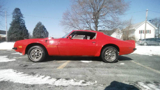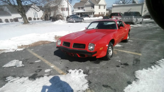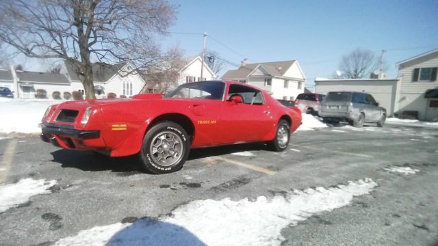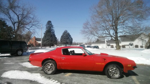 Up for sale is a 1974 firebird trans am. it has an alluminum 4 barrel intake and a new edlebrock carb. Its equiped with power disc brakes power steering and air conditioning. the ac is disconnected but could be put back in with not much hassle. The body is very straight and solid floors and trunk are in great shape no rust issues. I have a hood bird decal for it but with it being so cold lately i cant put it on until i *+can use a very warm shop or until i get a decent day. the buyer has a choice if u wont it or not that whould be up to you. The paint is very nice the body is straight there arent any issue with paint. The interior is very nice some of the gauges are not working. The dash is free of cracks. It has nice headliner and door panels the only issue in the interior is the package tray. you can get it from ames performance for about 20 dollars. this is a nice weekend cruiser car. looks awesome everywhere it goes. its got great pai nt nice interiorruns and drives good, this is your chance to buy a musclecar that is just gonna rise in value thanks for looking and bidding have a blessed day