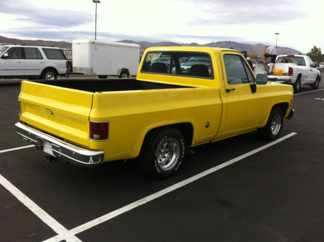 1977 Chevrolet C10 regular cab Fleetside short bed Small block Chevy Engine / automatic transmission Engine Runs good. Edelbrock Carburetor & intake manifold, Transmission shifts good, Header exhaust with dual exhaust. steering & suspension feels good, Cloth hi back seats with center seat and fold down center, decent interior. Carpet good, heater works, good tires on steel chrome wheels. (have picture of 4 extra spare wheels/tires in bed, Not included with truck) Class 3 towing receiver welded to frame. Passed Nevada smog check, Clear Title, Actual miles unknown, No maintenance records. Local Body Shop said $500 to repair bed/cab area without paint & minimal bondo filler, suggested replacing door. NADA Guides book, low $5,375 / high $19,400 / Buy it Now for $2,850. immediate payment of $250 due by PayPal to purchase this vehicle. 3 0+ day Layaway available with $1,000 down, balance due in 30-days, ($125 fee added to sale price for Layaway). No Refunds on any payments made. Truck stays with seller until paid in full. Balance or Layaway Payment due within 3 days by Cash in person, Bank Wire Funds Transfer or deposit. We don't except Credit Card or PayPal for Balance. Call by phone if you have questions; (530) 307-9275 Brad All Vehicles Sold AS-IS / All Payments Non Refundable Seller is a Nevada Licensed Used Vehicle Dealer: All Nevada buyers must pay : 7.725% Sales Tax, $28 title fee, $40 Smog. / Out of State buyers will be given a 15 day temp driving permit. $125 Documentation fee is included in final price not added. Use DasAutoShippers.com for instant transportation quote in U.S. / I don't ship into Canada, only to the Border Local Transport From Reno NV for Overseas shipping through Schumaher Cargo Logistics in Los Angeles, CA. is $350.