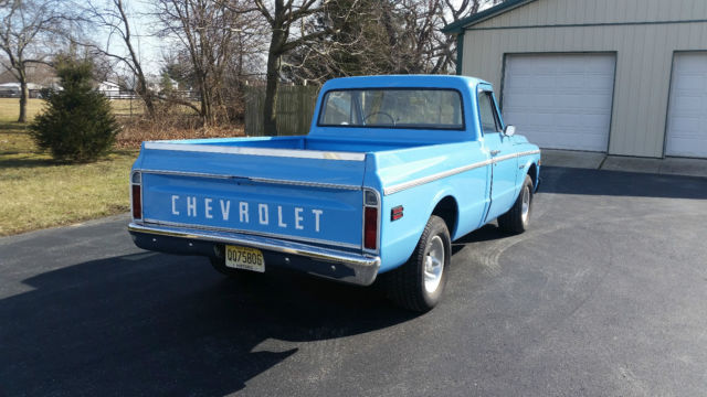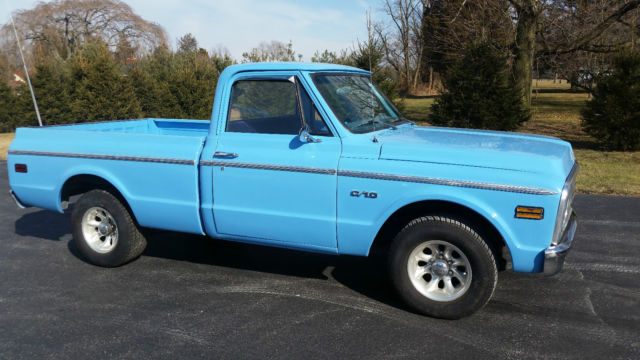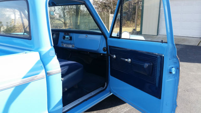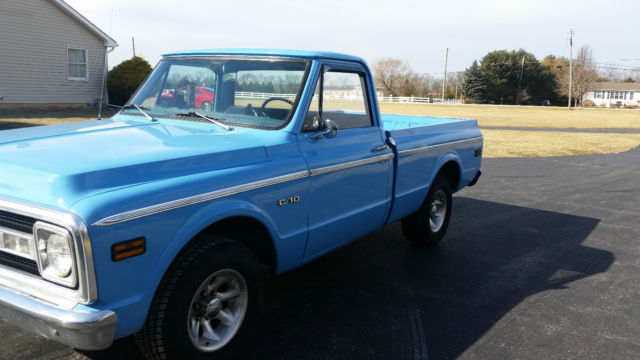 You are looking at a 1969 Chevy C-10 Short Bed Fleetside. This is a well taken care of pickup that spent most of it's life in a garage. The body is in excellent shape. Has a recent fresh paint job. This is not a bondoed truck. It's has all the stainless trim package that presents well. The bed is in great shape intact and solid. The frame is in superior shape from front to back. The brakes and tires are in good condition. The engine is a 350 that run strong and is match to a nice upgrade 700/R4 transmission. The odometer reads 86441 but current engine and drive train does reflect that mileage. There are headers and dual exhausts. There is also classic air conditioning and a new heat and air control unit was installed to assure smooth operation. The interior is in nice shape. There are a couple of small cracks in the dash pad. The pad appears to be original. Check out all the pictures ask any questions. Nothing to hide here. This is really one of the nicest well maintained and preserve 1969 C10 s out there. If you are looking for a nice ride that shows well or you are looking for a truck to modify or build this is great start. There are no implied warranties. Again, ask any questions.