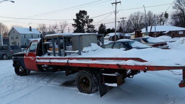 1978 chevy rollback truck .the last guy that owned it put a cab on it that has no rot at all and remounted with all new hardware it has a 350 engine and 4 speed manual transmission .it I'd on the road now and runs well..when I bought it they told me that the hydraulics needed work.i tried it out last week and it went back and tilted I was shockedwhen it worked .just as the bed went back into position the main ram cylinder puked up fluid so at the least that ram needs new seals At least we know the pump works.the huge winch also runs off the pto and pump.i have been driving it all over cleaning out houses but using a clutch is to much for my back.it runs great And I got the heat working but there is stuff the last guy never finished hooking up. Speedometer, temp gauge ect tires are good and has no fluid leaks.I have an open title in my name.also it is titled as a flatbed wich works out to your advantage it must of been made into a roll back at some time .if you have any questions call or text.with no rot you rave the start of a, seriously cool race car or hot rod hauler.it has a new looking gas tank also .one day I drove it 200 miles with no problem.i changed the heater box inside and out and also changed heater core.i put new blower motor and hooked it to toggle switch.to cold to trace the heater wires the last guy cut the plug off. just to cold to mess with it it is to large to go in my garage .the bed is 16 feet.all the lights and the horn work..pick up here in rome ny Powered by eBay Turbo Lister The free listing tool. List your items fast and easy and manage your active items.