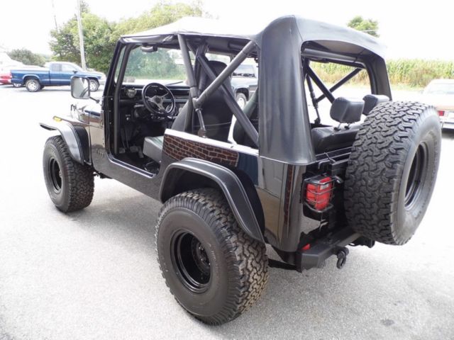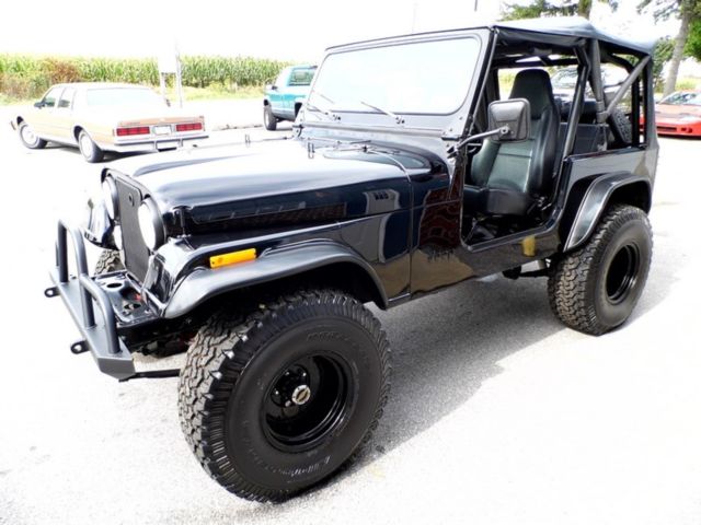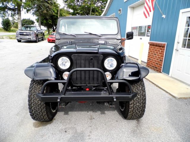 MY 1979 CJ-7 HAS BEEN HAND CRAFTED FROM SCRATCH , I MEAN I HAND BUILT THIS JEEP FROM THE BOTTOM TO THE TOP , I HAVE 37 YRS IN AUTO RESTORATION TRADE , EVERY ATTENTION TO DETAIL HAS BEEN TAKEN TO INSURE THE QUALITY OF MY JEEP . AFTERMARKET CD PLAYER INSTALLED , INSIDE TUB IS RHINO LINED BLACK , UNDERNEATH WAS SPRAYED WITH POR15 , THEN TOP COATED WITH CHASSIS BLACK . EXTERIOR HAS BEEN PAINTED WITH PPG GLOSS BLACK BASECOAT AN 6 COATS CLEARCOAT FINISH , BUFFED AN POLISHED . ONLY DRIVEN ON SUNNY DAYS . BRAND NEW BEST-TOP SEATS BOTH FRONT AN REAR . FACTORY COMPLETE FULL ROLLCAGE . OVERHEAD SPEAKER BAR INSTALLED , NEW GAUGES , NEW ODOMETER , 35 IN BF GOODRICH TIRES , BOTH FRONT SEATS TILTABLE , PRE-WIRED FOR AMP , 4" LIFT INSTALLED , HALF DOORS INCLUDED WITH MIRRORS , ANY OTHER QUESTION'S CONTACT ME , I HAVE A LOT OF PICTURES TAKEN OF THE PROCESS OF BUILDING THIS CJ-7 AN WOULD BE HAPPY TO FORWARD THEM TO YOU , THANKS FOR LOOKING AT SUCH A BEAUTIFULLY HAND BUILT JEEP .