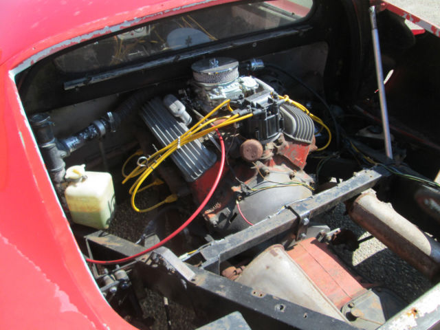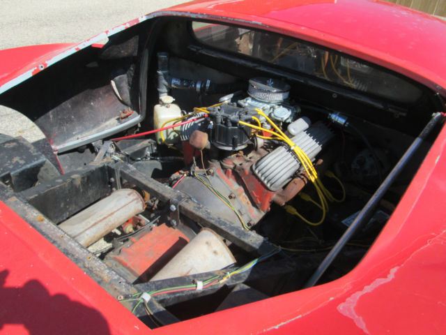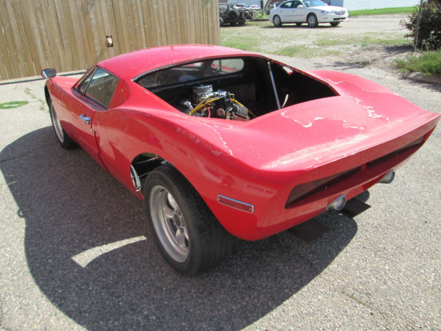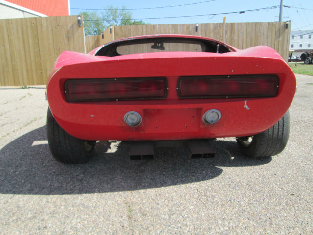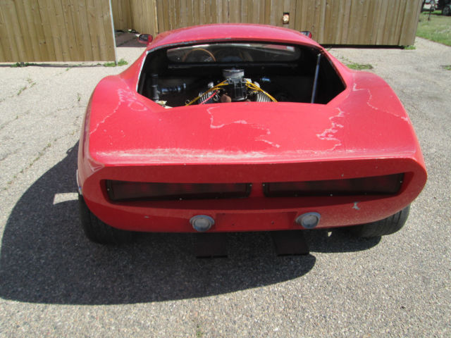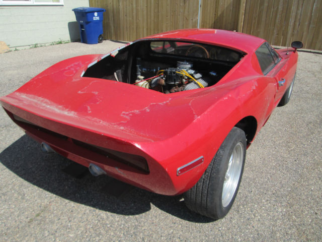 Imported to Canada 7 years ago. I have the Illinois title which has been signed off. Someone spent a lot of time on this. Very well done. Engine block and heads have codes that translate to Hi perf 283. I put together a 1965 Corvair Mid engine back in 1975. This car is supposed to be lighter than the corvair v8 deal. I weighed about 2600 lbs. This is maybe 2200. Corvair would run 11:80's thru the mufflers. The kit uses a 2x5 box tubing frame with a corvair front suspension assy as well as the 66 or later Corvair Saginaw 4 speed bolted to thee stock corvair diff. My corvair also came with a custom 4 spider diff. Don't know if this has it but they are available. Some of these were built with a Mustang rear fastback window. Others with just the louvers. I have an assembly manual which shows they used LTD side glass and corvair w/s. There are a few sites with cars shown. Car has been off the road I was told for 30 odd years. Shows 1800 miles. Motor seems to run fine but the brakes are shot as well as the hyd clutch. Also the car comes with the ET slots. tires were G60 15's and two would not hold air. The 5 spokes are not included. I have sold cars into the US before and am quite familiar with the details. Car is in Davidson Sask, Canada Bob 306 500 0688. I'm 70 years old and have a hell of a time getting in the bloody thing. I am now lining up parts for a 540 mid engine corvair. At least I can get into it