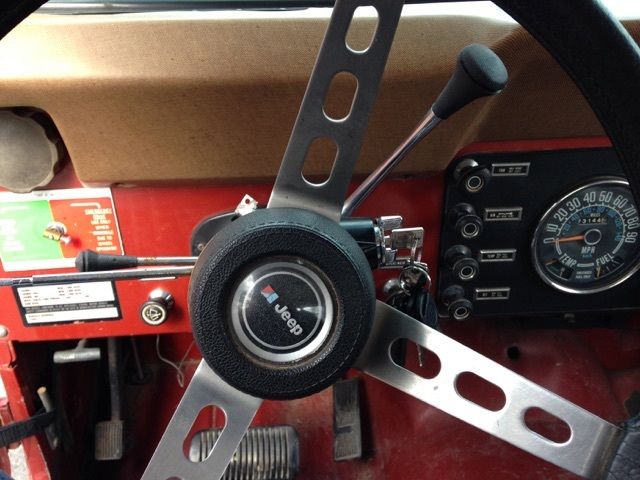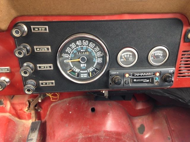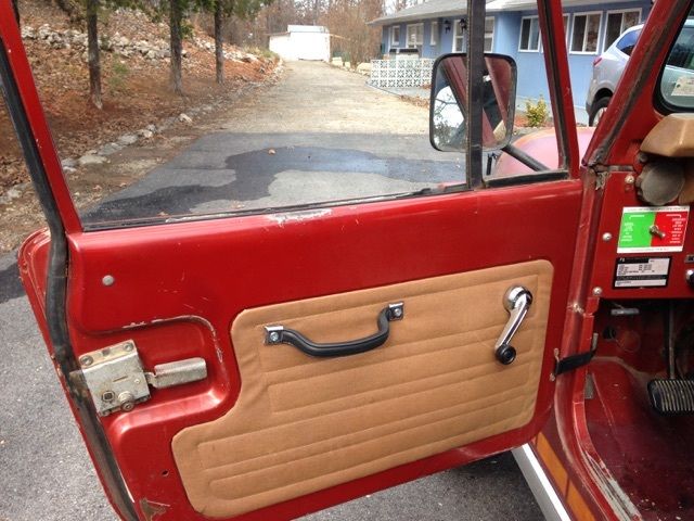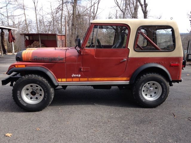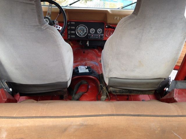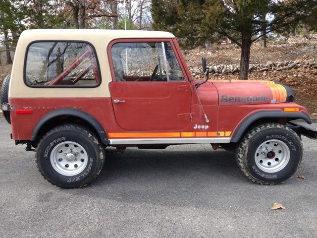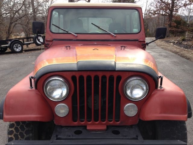 I have for auction a nice 1979 jeep cj7. It is a 6cyl auto hardtop with Quadratrack. I believe that it is a true renegade Levi's addition but haven't found a way to prove it. Someone before me took out the front seats and they are now grey. The rest of the interior door panels dash and rear seat are all the Levi material with the big buttons on the back seat. I drive it back and forth to work and recently took it a hundred mile round trip. It runs down the road good at 55 mph it's has some typical jeep play in the steering and someone took off the power steering off of it so it's harder to turn then one with. The Quadratrack switch has been moved over by the driver and works great and when it engages the emergency drive light comes on on the gauge cluster. The glove box is out of it they are just cardboard. All gauges work including gas and temp and the lights work on them to. Heater works good to along with the windshield wipers. The transmission shifts well motor runs good sputters some at idle I figure it's just the carb. It runs great down the road and has good power. All lights work. All glass is good and hard top is in great shape not all beat up. The frame on the jeep is solid not rusted out or rotted. The body has some rust in normal cj areas but it's not a rust bucket floors are solid looks like a previous over may have patched some spots on the front floor boards but doesn't appear that it was bad. I tried to take pics of everything. There is some typical rust in the body lines where the fender wells meet the body and the rear corners in the back and a spot on the bottom of the passengers front fender. Definitely not a rust bucket a good solid jeep to drive or a good start to restore. It has new shocks all around newer cap and rotor and wires. Tires still have some life left. If you have any questions please just ask. As always I encourage personal inspection and I have tried to describe this jeep to the best of my knowledge. It is for sale locally so I do reserve the right to end the auction early. If you have any questions my number is 870-656-6109 thanks.