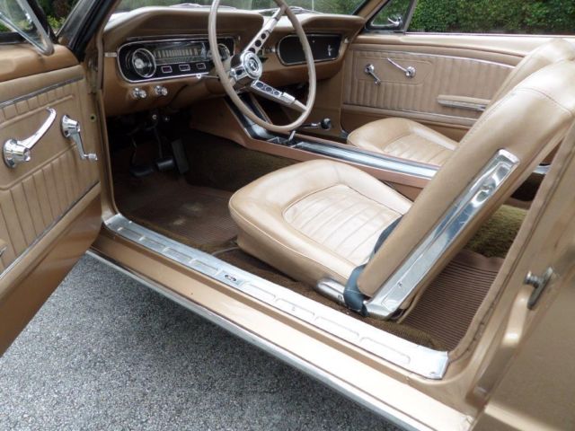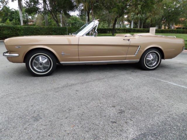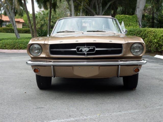 For either the classic car collector or the enthusiast who is looking for a well maintained eye catching summer drive it is difficult to look past this little gold pony. This early built Mustang is powered by the correct and desirable ''D'' code 225 horse 289 V-8 Engine and a 4 speed transmission with console mounted shifter and correct 3.00:1 rear end. All true Mustang fans knows that the D code engine option is the true sign of an early Mustang with performance in mind. True muscle cars and classics like this are ONLY appreciating in value! Un-Molested Survivor, this mustang is virtually a time capsule. Only one repaint. Well documented original 27,000 Miles, 4-Speed Transmission, Color prairie bronze W hite Top. In 2008 the car was certified appraised with 25,869 miles with a value of $44,800.00 Vehicle is sold as is with no warranty. All sales are final and no refunds are accepted. We recommend you have the car inspected before the purchase. Overseas bidders are welcome. I will help transport the car. If you have any questions I am happy to answer them through email or you can call/text me at 786-375-Zero-One-One-Three Seller reserves right to end auction at any time, vehicle is for sale locally as well