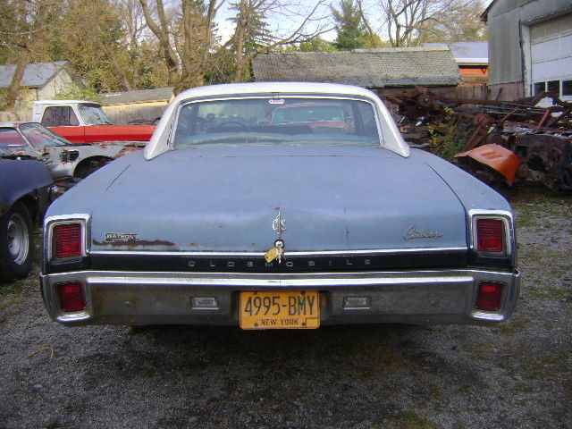 This is a real nice original 1967 Olds Cutlass 2 door hardtop body. It is all original sheetmetal that is all good. Even the floors have no holes. The frame is really nice. It has the original interior with bucket seats. It was a floor shift with console but the shifter and console are missing as well as the engine. The transmission is still intact. It has a 12 bolt rear end that appears to be the original as well. There is a hole in the left side of the trunk pan. Doors, fenders. hood, trunk lid, roof and quarters are all fine and reuseable. If you are looking for a body for a 1967 442 this could save you a lot of time! Please feel free to contact us with any questions or concerns you may have. You can email or call us at 716-652-7086. Check out our other auctions. Camaro Specialties has been selling restoration parts for 1965-1981 Camaros, Firebirds, Chevelles, Novas and GTO's as well as project cars for over 30 years. We would also welcome inspection at our shop. Thanks for looking!