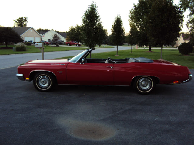 This car came to us from what we believe to be the second owner. According to the build sheet that I got from under the rear seat the car was built in Kansas Citry and delivered to Len Pollack Buick in Gary Indiana and has spent its life in northwest Indiana since new. It was serviced by a local repair shop so the vehicle runs and drives well .The paint had a few flaws ( no rust ) so we had a local shop refinsh the car in the same original color although using todays products and clear coat. The floor had a weak spot so we had that repaired and the undercarridge sealed. The seats are black leather in good shape and we replaced the carpet with original type.We added a later style radio w/cd.The power top woks with no problems or leaks neither oil or water and has no holes but I feel it should be replaced to look as good as the rest of the car. I have unplugged the a/c compressor as it needs to be recharged but it is not froze or noisey.If you are looking for a great driver and fun car thats plenty roomy this may be the one.Good luck.