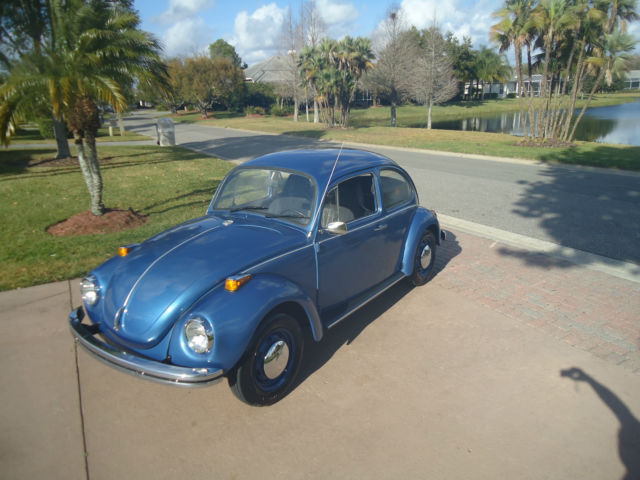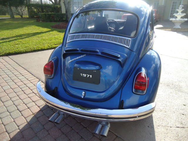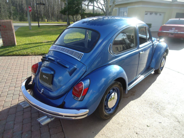 1971 VOLKSWAGEN BEETLE CLASSIC - THIS IS ONE PRETTY BUG -- VERY RARE TO FIND THIS COLOR -- NICE CONDITION INSIDE AND OUT , You will love this little beetle it is in great condition, a lot of fun to drive , beautiful shade of blue with black interior, the body is in great condition , the paint is really nice has a great shine, no dents, no bad marks, the interior is super clean, very good little car, a lot of extras, like the chrome accents, the same color wheels, am /fm cd player, the dual exhaust system , and the rear spoiler really set this car off, it looks just amazing, lots of complements everywhere it is drove , a lot of fun to drive , the tires are in great shape, the front compartment is very nice and in good shape, the engine compartment is nice , the underside is very nice, overall a great little car, I have set a GREAT PRICE on this car and especially with free delivery brought right to you, this is a great price -- this car is available to view and inspect at anytime before purchase, and like all other classic cars this car is sold as is no warranty on nothing , the paperwork will be ran through a dealer, after payment is made it will take 3-14 days for delivery depending on your location , this is your chance to own a great looking little classic .
