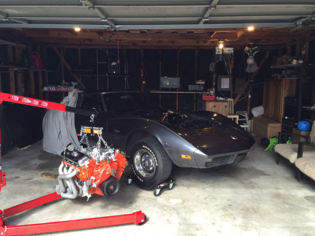 1974 Corvette T-Top Coupe, 454 LS4 Big Block, TH400 Auto; LAST YEAR OF THE BIG BLOCK CORVETTE!!!   LAST YEAR TRUE DUAL EXHAUST AND NO CATALYTIC CONVERTER! THE FIRST YEAR FOR THE SOFT FRONT TOGETHER WITH THE SOFT REAR BUMPERS! •Original Block and Transmission (#'s match); •Power Steering, Power Brakes, Power Windows, AC Optioned Car (AC needs Compressor) •Engine fresh rebuilt (2014, block and heads assembled by motor shop - have receipt); •Transmission rebuilt (2014, local shop - have receipt); •Quadrajet Carberator Professionally Rebuild (2014, by Lars Grimsrud @ Musclecar Restoration, Parts, and Service) •Solid frame (some mild surface rust underneath per norm, Birdcage Solid) •Headlights pop-up with no problems; •Nose and Tail in great shape; •Original White Car, now Gunmetal Grey paint with clearcoat - condition is "10 footer" (it looks great from 10 feet,flaws upon close inspection); •Original Black interior (good shape, no rips/tears in carpet, seats or dash); •All gauges good (except for clock); working knob cassette radio; •Motor still in break-in period; This car is very lightly touched and a great example of what an original car should be.  Some of the notable 'touch' points are that the car does have Long Tube Headers and the headers are Dynocoated for cooler underhood temps and overall protection protection - the original iron intake is also coated with the same Dynocoat.  With the rebuild, the motor shop installed a Mild Cam and Flat Top Pistons to add "pep to her step".  They also rebuilt the heads to spec and put everything together as a Long Block prior to installation. This car was purchased last year for $15k from a vette lover that was forced to sell and more than a few thousand dollars have been invested already to bring this beauty to the condition it is now.  I do have many of the recent receipts reflecting brake, engine, and transmission rebuild/work that I will include with the car for your documentation purposes. This car is currently wearing Antique tags and drivable - I currently drive it on nice days to the office and/or cruises to the park or meets. This car is a great very original car that still has things to work on, but can now be driven and enjoyed as you do so. If you really have the time and dollars to invest this can easily become and all original full restoration worth $30k or better!