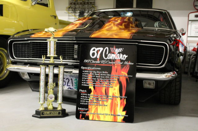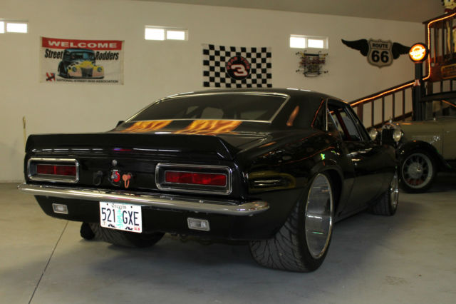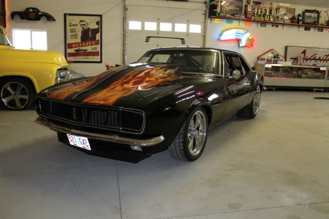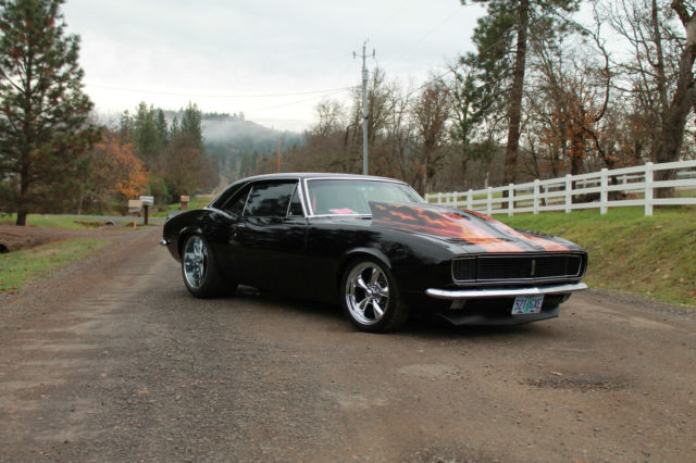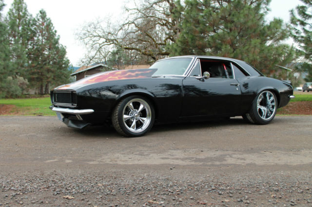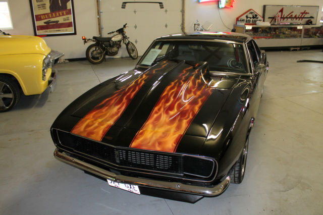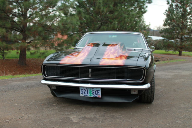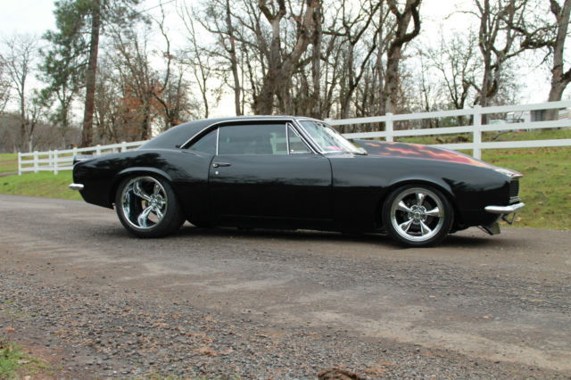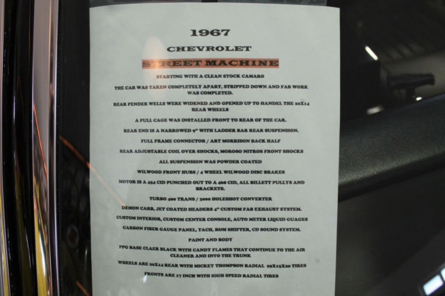 I NEED EVERYONE TO UNDERSTAND. IF YOU MAKE A OFFER PLEASE FOLLOW THROUGH WITH PURCHASE.. I HAVE HAD EMAIL OFFERS AND OFFERS ON EBAY. I ACCEPTED THE LAST OFFER, THAN THEY REALIZED IT WAS TO MUCH CAR. EVERY OFFER MUST MADE THROUGH EBAY. THIS IS A VERY COOL CAR, BUT DONT GET EXCITED AND MAKE A OFFER THAN REALIZE YOU CANT AFFORD IT. THANK YOU. 1967 CHEVROLET STREET MACHINE CAMARO CAR HAS UNDER GONE A BEAUTIFUL CUSTOM RESTORATION CUSTOM BODY MODS WITH THE REAR FENDER WELLS WIDENED TO HANDEL THE 20X14 WHEELS MOTOR IS A BUILT 454 BLOCK PUNCHED TO A 468 CID, BUILT FOR THE STREET.. PUMP GAS BUILT TURBO 400 TRANS WITH A 3000 HOLE SHOT CONVERTER NARROWED 9 INCH POSI REAR LADDER BAR REAR SUSPENSION WITH COIL OVER SHOCKS FULL FRAME CONNECTORS AND FULL BACK HALF INSTALLED. WILWOOD BRAKES ALL AROUND BEAUTIFUL BLACK PAINT WITH CANDY FLAMES. CUSTOM INTERIOR WITH CUSTOM CAGE. CARBON FIBER GAUGE PANEL CUSTOM CENTER CONSOLE. CUSTOM FUEL CELL. WHEELS ARE 20X14 REAR AND 17X8 FRONT ALL NEW. MICKEY THOMPSON STREET RADIALS ON REAR. VERY DETAILED CAR. LOOK AT PICS AND CALL ME WITH QUESTIONS LIST GOES ON. VERY NICE STREET AND SHOW CAR GT MOTORSPORTS 541-601-0153 CAR IS SOLD AS-IS