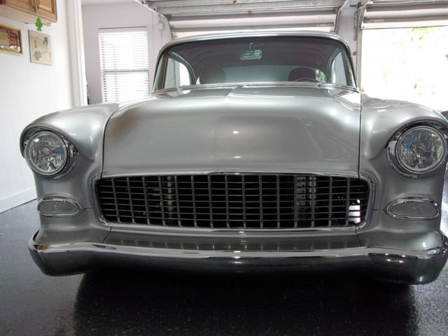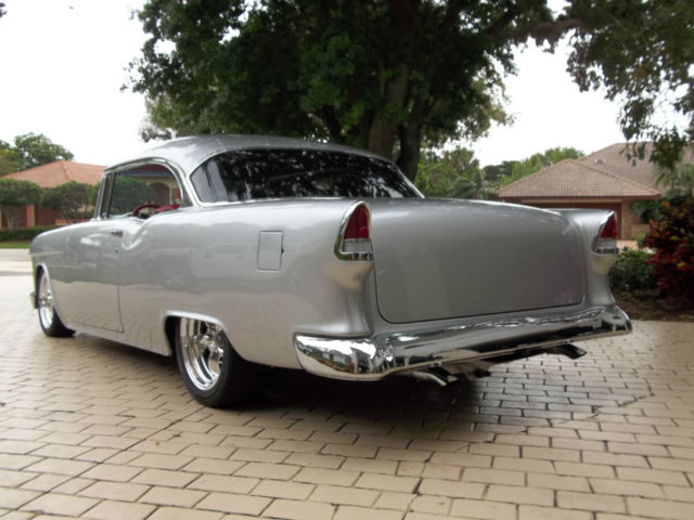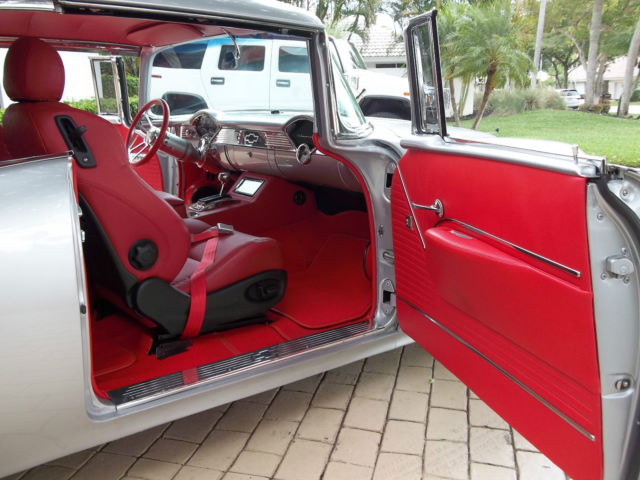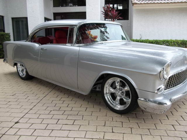 Up For Sale is a Gorgeous 55 Chevy Pro Touring High End Build. Recently Completed with a Custom Built Frame (Watts Link), 4 Link, 3rd Member, 4 Coil Overs, Tubular A-Arms, From the Firewall Forward The Frame Was Removed And Redesigned, Mustang ll Rack & Pinion. Started with a Solid Body. Total Body Off Resto-mod. Body Has Been Completely Smoothed, and Mini Tubbed, Professionally Painted HHR Silver with 6 Coats of Euro Clear. LS2 Corvette Create Engine Installed with Stand Alone G.M. Harness, 700R4 Professionally Built Trans, Hidden Trans Cooler Under Car with Built In Thermostat and Fan. Drive Shaft Custom Built To Handle 700HP. B&M Quicksilver Shifter, 55 Rear End Custom Built with a 4:11 Eaton Posi Setup. Fuel Cell Recessed into Trunk and Hidden. Aeromotive Fuel System Installed. Vintage Heat & Air,Power Windows,Custom Console From Front to Rear, Pioneer Touch Screen Sound System with Navigation & Bluetooth, Digital Dakota Analog Gauges, Power Leather Seats with Lumbar, Rear Captain Chairs, Stainless cup Holders, Seat Belts, All Heat & A/C Switches Hidden in Glove Box, Power Trunk Release, American Auto Wire Harness Professionally Installed, High Definition Head Lights with Incorporated Turn Signals, Daytime Running Lights, Custom Leather Interior. OVER a $120K Invested, Only the Best of the Best Was Put Into the Car. Its PRISTINE, Call 954-629-8332