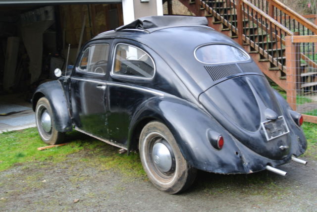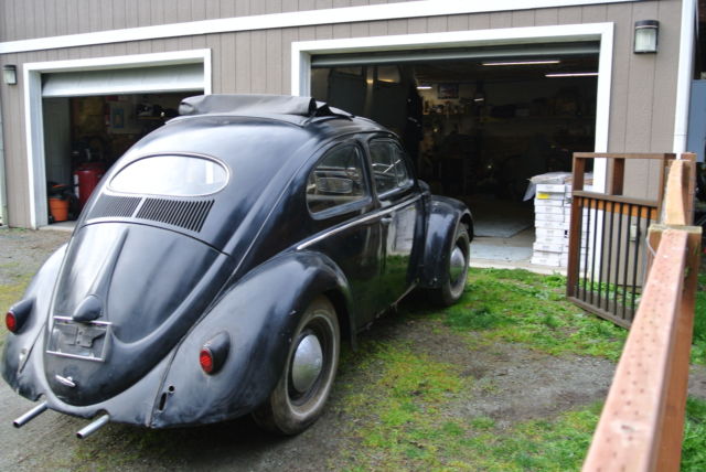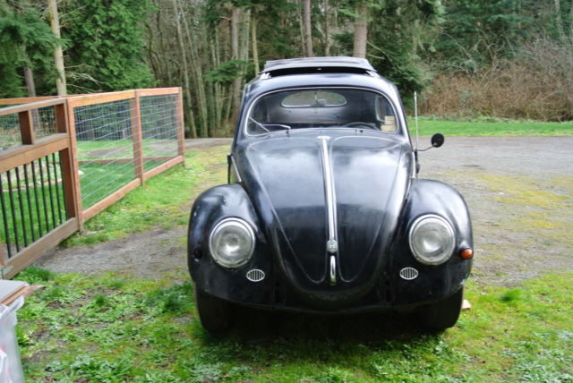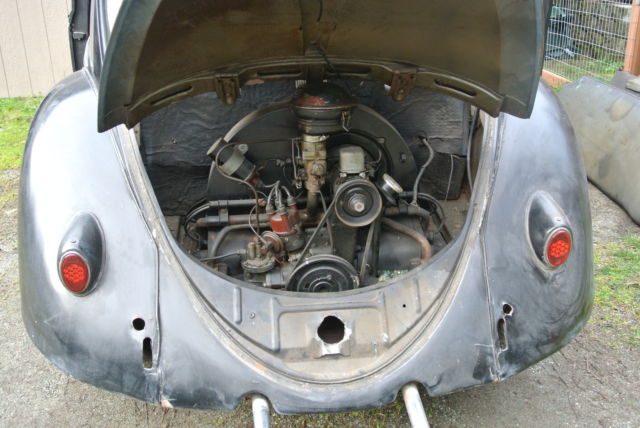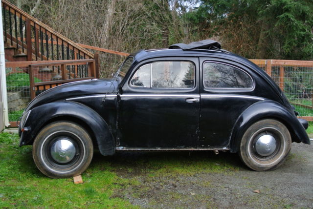 Hi what I have is an original 1957 vw oval window bug beetle with a rare factory ragtop (not grafted in like most you will find). It is complete including the original 4 tab hood, but the car needs a complete restoration. The body and pan #'s all match and I do have the title for it as well and I believe this is the original engine as well engine # 1610494. The original color looks to be a copper color as the trunk and inside ceiling are still painted that color. There is some rust as typical with these cars, and does need new heater channels and lower rear 1/4 panels, under battery, front lower section of 4 tab hood, maybe a spot here and there but overall a solid car. The spare tire well was replace with a Wolfsburg west panel but still retains the original 4 finger front and H rear aprons. I did start taking some bolts off to remove the body from pan but to start a resto on it but realized I do not have the time to do this car rite and installed some bolts back to transport car safely. The car has never been hit front or rear. If you are looking for an original car to restore look no further as still having the original #'s matching body and pan with correct engine this is the one that will only go up in value. I can deliver car to Everett area to help with transporting the car to new owner. The vehicle does not run and needs to be trailers or towed. I do have extra parts like lower 1/4 replacement panels drivers windshield wiper and wire tubes for the front fenders other misc. parts that come with the vehicle. Please email with any questions. Thanks!! 1957 1956 1955 sliding ragtop rag top