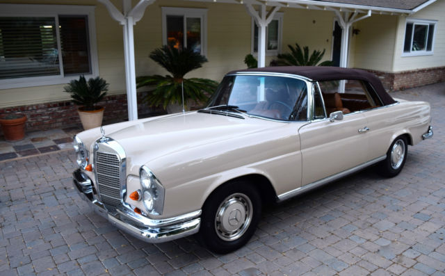 1967 Mercedes Benz 250SE Cabriolet, believed to be an original California car was sold in 2012 from Los Angles to last owner, it is painted in its correct color of Sand Beige, a very solid car it has benefitted from much recent work with new parts including Brake Servo, 4 Shock absorbers, anti sway bar bushings, brake hoses, battery, leather interior and much service work. Drives very well, the floor shift automatic changes smoothly, engine starts easily and runs very nicely, engine compartment is nicely detailed Please view the many picture posted below and in the photo bucket link, I am happy to answer any questions, of course an inspection is welcomed and recommended before auctions end, please call me on 925 789 9825 I am a licensed California car dealer, all sales in California are subject to applicable use taxes, sales outside of California are free of California taxes only if the vehicle is transported out of the state by means of a licensed and bonded transportation company or international shipper. I can help in these arrangements should you require. I work with Aladdin Freight of Oakland California whose services I highly recommend, shipping to most northern European ports is approximately $1500:00 Taxes in Holland and UK on this vehicle should cost approx 5%