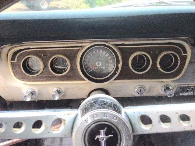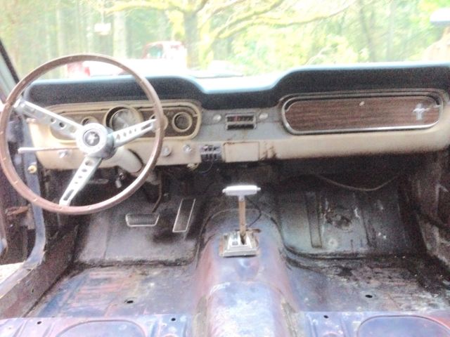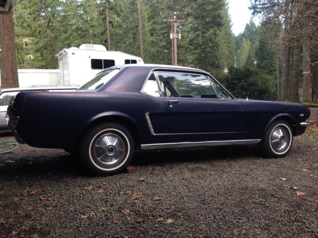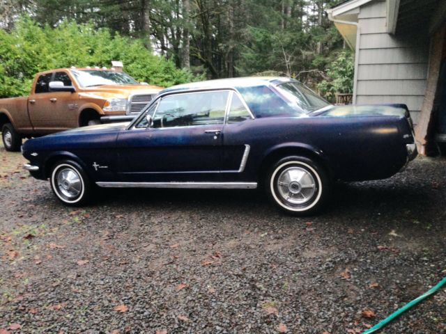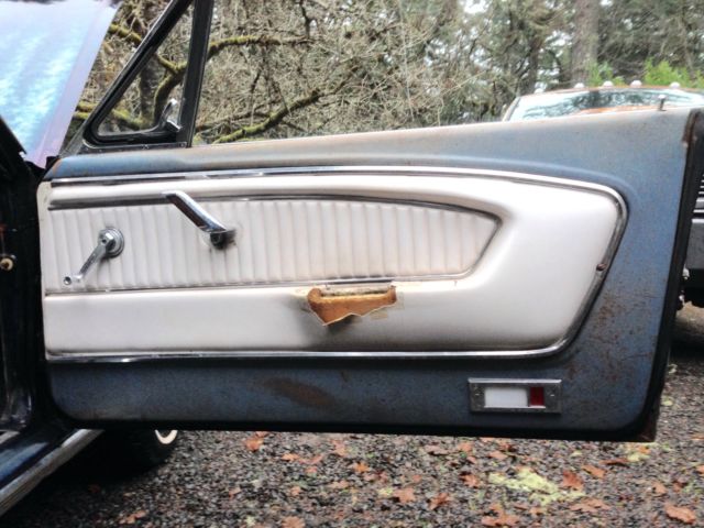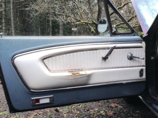 I'm the second owner of this Caspian Blue C-Code '65 Mustang 289 V8 coupe. This car sold new through McRobert Ford in Gresham, Oregon and still has it's original license plates and dealership plate-frame. It is a San Jose factory-build and is complete with original 289 V8 2-barrel engine and the blue and white crinkle pony-interior. It has been in storage for about 14 years. It runs well and is totally solid and clean with exception to some very minor pin-hole rust repair needed on the rear floor-pans and a couple small spots on the right front floor-pan. It needs brakes, carpet, the new fuel tank I have for it installed, and a few minor details to use it as a driver. This car has never been exposed to salt and has never left Oregon since new. The minor floor rust is due to the carpet getting wet on and off over time from condensation and moisture occasionally became trapped under the carpet in this damp climate. The under-body: rockers, front and rear quarters are clean and solid. It can be fixed up cheaply and driven as it is or otherwise a cosmetic restoration would certainly renew its original appearance. This a reluctant sale, however, I cannot afford to keep the car any longer. Clear Oregon title. Seller reserves the right to end this listing at anytime. Serious inquiries please. Email me if interested and thank you for looking.