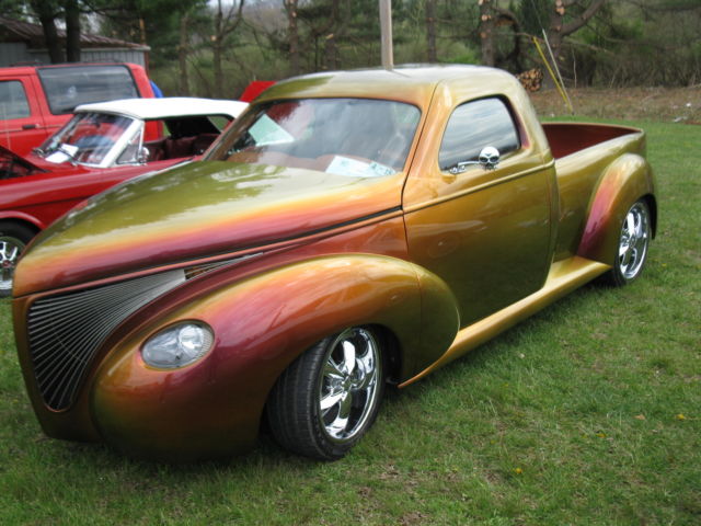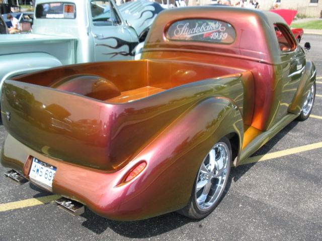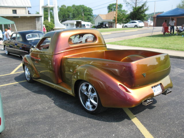 I am selling my 1939 Studebaker P/U Kit Truck, it sits on a 1998 Chevy s-10 Frame, This is one of the finest Studebaker kit trucks that you will find, This truck has always won top trophies at all shows, Best in Show, Best Truck, Best interior ,You will never get tired of thanking people for all of the good comments you get about the truck. the interior is killer, The paint is unbelievable Gold to Burgundy Chameleon Paint, New Riddler Wheels and tires, 18's in the front and 20's in the back I did not build the truck, so I do not know if Millage is original or any engine work has been done. but it runs sweet and holds 50 lbs of oil pressure warm. duel exhaust, wooden custom bed, trimmed in skulls, review back up mirror. It is titled as a 1998 S-10, so tax and insurance is cheapĀ but there was nothing cheap about the build. PS,PB,AC please do not ask what is wrong with the AC as I have never taken it to have it checked so I do not know. an unbelievable sound system, new battery, I recomend anyone interested to please come and look at this cool show truck, but bring your trailer there is no reason to make 2 trips. I know you will want to take it home. It starts right up and runs down the highway with no problems. PLEASE NO TRADES. As I said I did not build the truck and I have given the best description that I can.