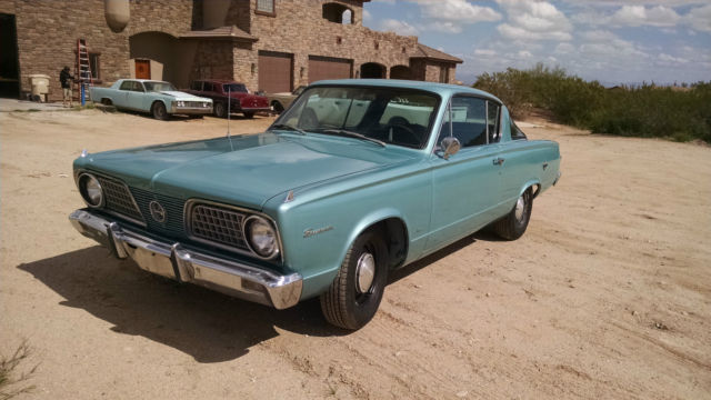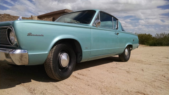1966 Plymouth Barracuda! is a driver I will consider all offers! Arizona car When reviewing photos please not the refection of the clouds in the sky(not oxidation) v8 273 factory A/C car with A/T this car has absolutely no rust! the car has new paint and had zero rust before it was just faded. I had plans to restore this car but to many project forces sale. body is Very straight. runs and drive good. has a smooth idle and starts easy every time. A box title with less the 19000 original miles I believe to be true. does not leak or smoke. interior does need redone as you can see in the photos. tires Are NEW. glass and trim were removed for paint had I have put most of it back on. the windshield does need the locking strip installed as well as the back I just have not got the time. this is a car you could just leave the way it is and drive. a/c does not work as one of the lines has been removed and the controller needs replaced or repaired. it has power steering but original owner removed belt to save fuel ( drives fine without) car has tons of power will smoke them if your not careful!