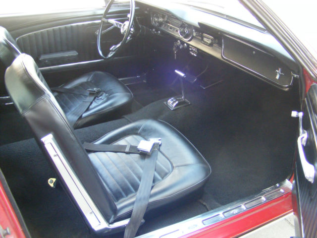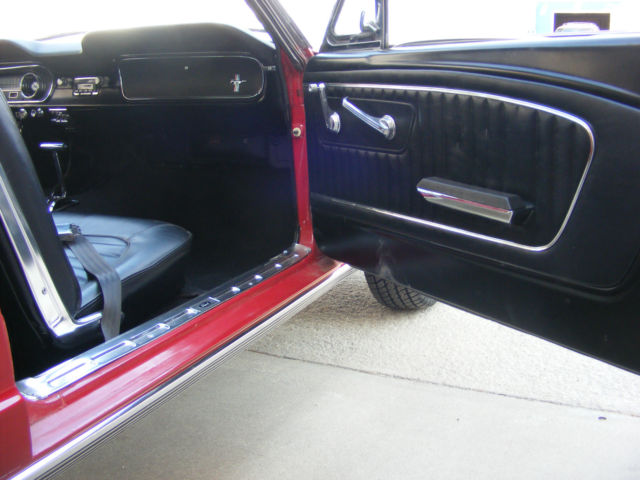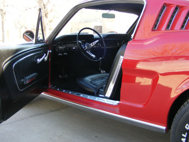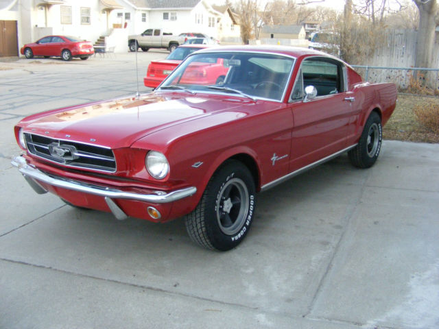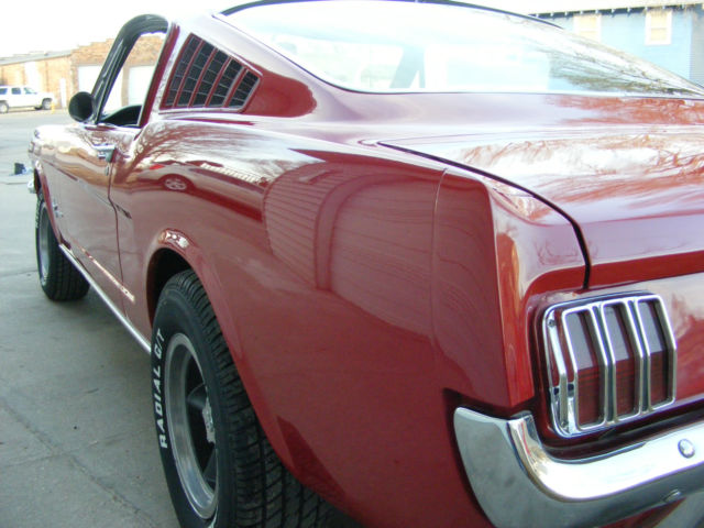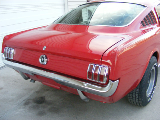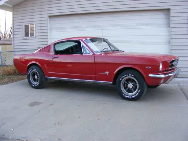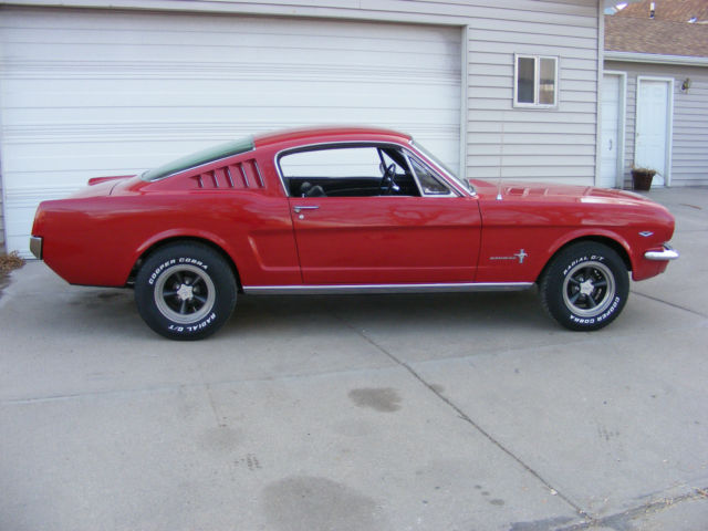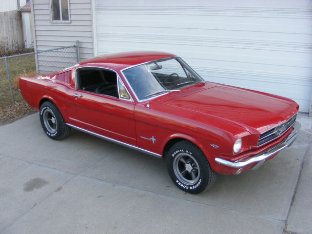 1965 Ford Mustang Fastback. Great driver fastback with very nice paint, new interior and a 289-4V. Car was originally a 6 cylinder and I converted it to a V8. I changed to the 5 bolt 8" rear end and 5 bolt V8 front end. Lots of new parts and components... New master brake booster rebuilt front drum brakes lower control arms upper control arms coil springs coil spring perches front shocks inner & outer tie rod ends rear leaf springs rear shocks rebuilt rear drum brakes gas tank sending unit fuel lines radiator & hoses Cooper Cobra tires mounted on vintage Torque Thrust style wheels Mustang center caps front and rear bumpers outside door handles fender emblems tail light bezel and lens rocker panel moldings On the interior... New carpet buck seat upholstery door panels arm rests instrument panel bezel instrument panel lens glove box door sill plates front seat belts The engine is a very strong running 289 V8 with a new 4 barrel carburetor. New 2 1/2" dual exhaust with Turbo mufflers for a great sound. A previous owner did floors and used non Mustang sheet metal. The floors are solid and undercoated but not up to a professional restoration standard. With a little better workmanship on the floors, this car would probably sell in the low to mid $30,000 range. There are a couple scratches in the bright red paint but overall is VERY nice. It was originally J code Rangoon Red but is now 1966 Mustang T code candy apple bright red. The parking brake and radio are not operable, but I believe everything else is working. Car is sold as is where is without any warranty. I will open this auction to outside the US. Transportation is not included but I can work with your shipping company. a Pay Pal deposit is due within 24 hours and balance in full within 7 days. Payment in the US can be cashiers check, wire transfer or cash. Any outside US purchase will be wire transfer only. Vehicle will not leave until all funds have cleared my account and are guaranteed. Please email me with any questions you have before you bid or buy it now.