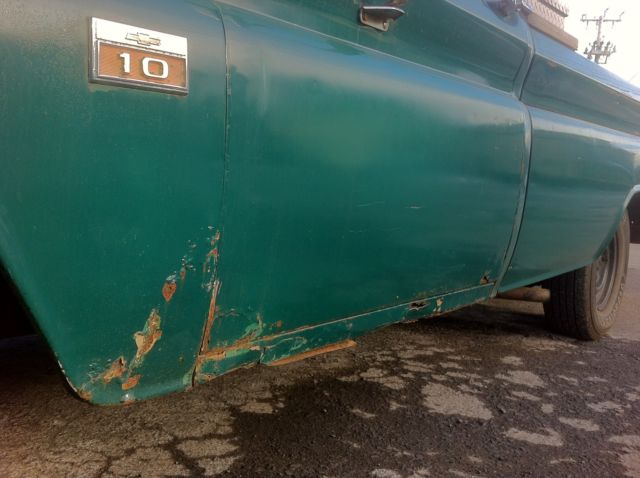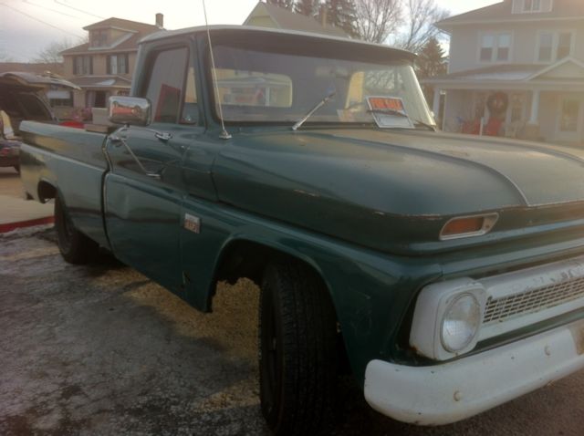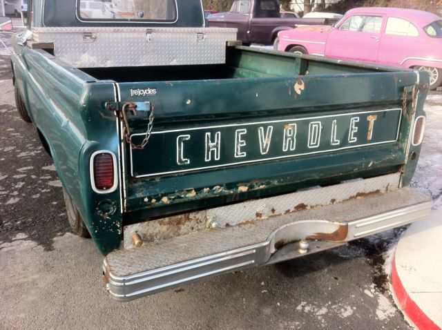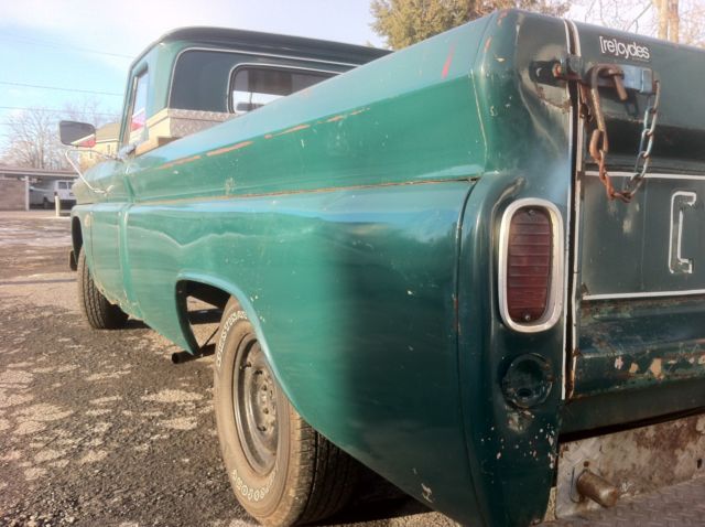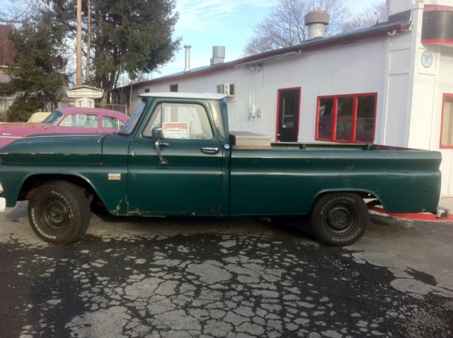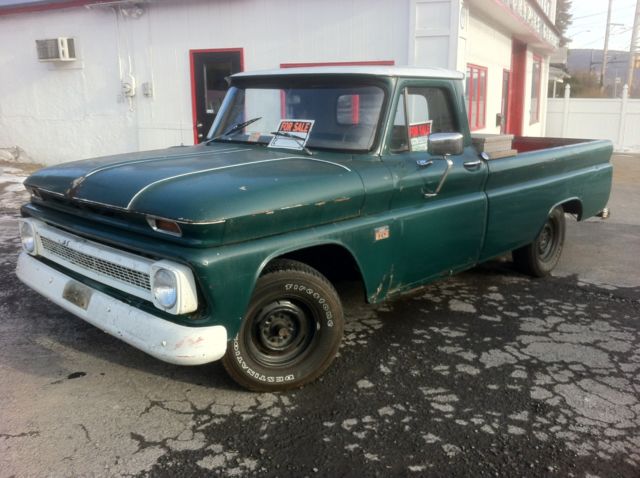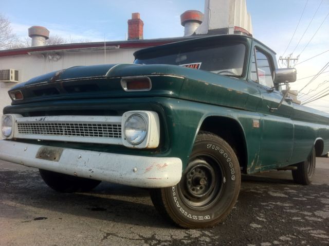 Here we have a daily driver condition 1966 C10 long bed, that was previously being used daily in Virginia and has a current Virginia inspection sticker. (Truck is now located in Scranton, Pennsylvania) The engine is a straight 6 cylinder that runs good. The transmission is a three speed manual with a Hurst shifter that was moved to the floor at some point. Clutch and trans are in good condition. Manual drum brakes work well, as does the parking brake. Lights, blinkers, horn, aftermarket radio, gauges, hazards, etc... all work as they should. Tires were replaced about a year ago. The frame is solid and dry. The body overall is in fair condition. Paint still retains a shine, but has patina and scratches and such from normal use. The inner and outer fenders have the typical rust spots. The rocker panels, floor support braces, cab corners, doors and partial floors have the usual rust. The bed floor has recently had some generic rough cut wood planks installed and stained. Overall, this truck is a reliable daily driver that can be used for what it is, and not have to worry about getting a scratch in the paint and such. Would make for a great shop truck or rat truck as is. Not a shiny perfect show truck by any means! Please email with any questions you may have, thank you. Truck has a clear transferable Virginia title. *Note: Toolbox shown in the some of the photos is NOT included.