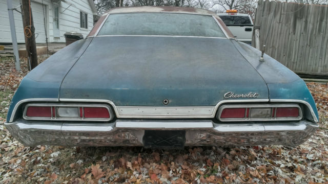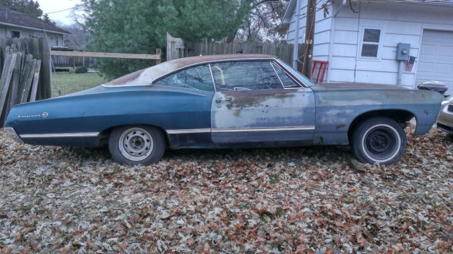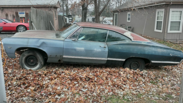 1967 Impala Base Needs Full Restoration Tahoe Turquoise With White Ermine Top Comes With 2 Cars Worth Of Parts - NOT All Parts Will Interchange - One Had AC, The Other Did Not Comes With New Chevrolet 350 V8 Engine - NOT Fully Complete - NOT Original Engine - Engine WILL Be Set In Cars Engine Bay No Transmission Frame Is Solid Usual Rusted Areas Does Roll And Steer I Can Send More Pictures If Interested (eBay Messages Will Only Allow 5 Pictures To Be Sent Per Message) Clear Title In Hand For A Kansas Buyer (Due To A DMV Mess Up - It Will NOT Need An Inspection IF You Register It In The State Of Kansas Out Of State Buyer Will Probably Get A Salvage Title From Their State - Due To Possible Inspection - I Do Not Know How Or What Each State Requires And That Will Be Your Responsibility To Figure/Find Out Car Is Being Sold " AS IS ". NO Warranty Is Expressed OR Implied. ONLY The 1967 Impala AND Related Parts Are For Sale In This Listing. Nothing Else In Pictures Will Be Included In This Sale. Local Pickup Only, Please Contact Me To Make Pickup Arrangements Within 5 Days . It Will Need To Be Trailered, You Will Need Room For Extra Parts That Come With It. You Will Need To Bring Several Tie Down Straps. NO Shipping. A $500.00 Deposit Will Be Due 48 Hours After Listing Close - Through PayPal. Payment To Be Made By "Cash In Person" OR "Certified Bank Check" ONLY . "Certified Bank Check" Can Be Sent By Mail OR Done In Person. PayPal NOT Accepted For Full Payment. FULL Payment Is Expected Within 10 Days Of Listing Close. Funds Must Be Cleared By My Bank BEFORE Title Will Be Signed Over To New Owner. I Would ACCEPT $3,600.00 IF Purchased Outside Of eBay, Otherwise My Price Here On eBay Is FIRM - Due To Seller Fees. If You Have Any Questions, Please Contact Me Through eBay Messages And I Will Respond As Soon As Possible. Thank You For Looking And Have A Nice Day!
